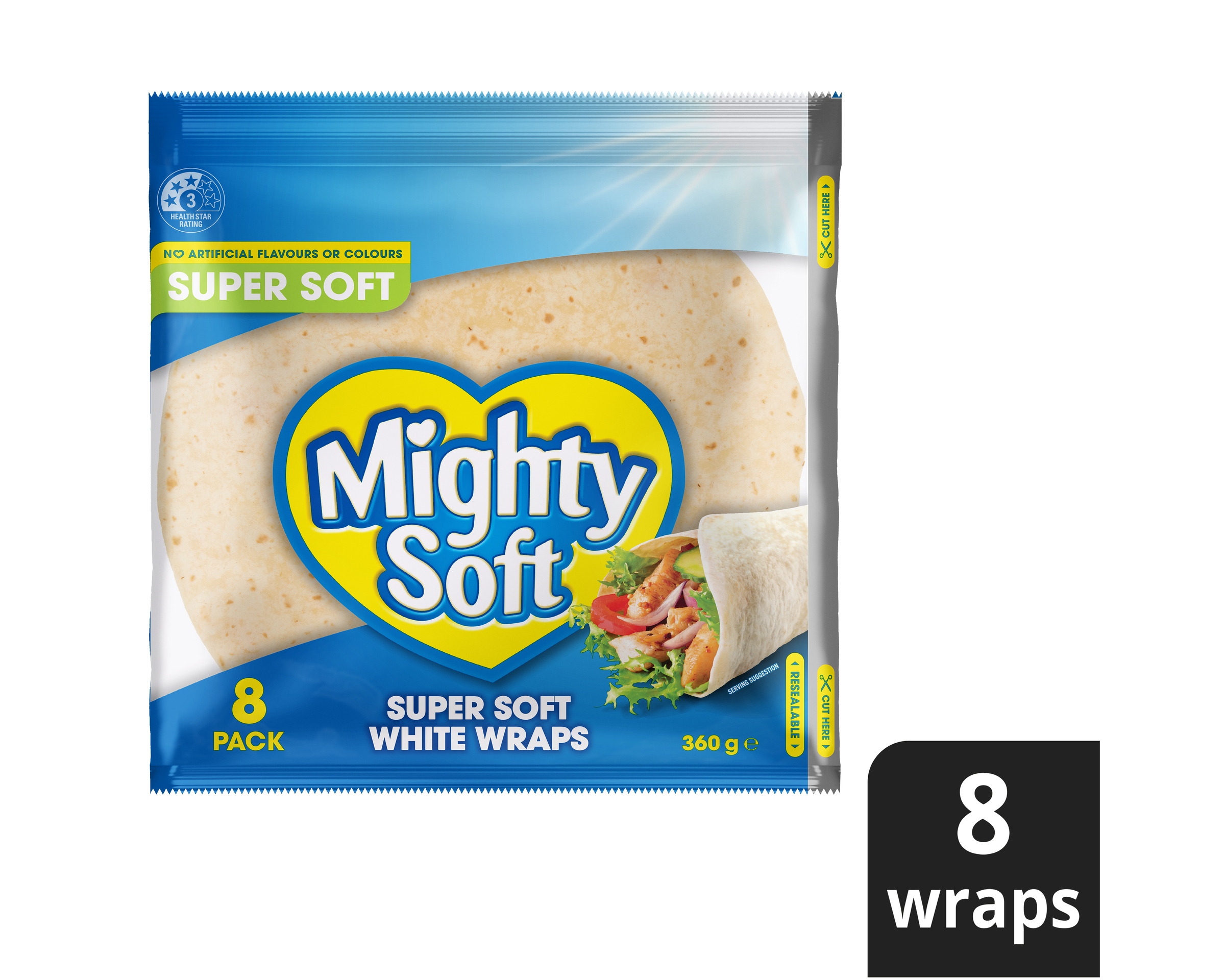 Mighty Soft wraps are baked with good, quality ingredients and mighty fine flour – it’s no ordinary wrap!.