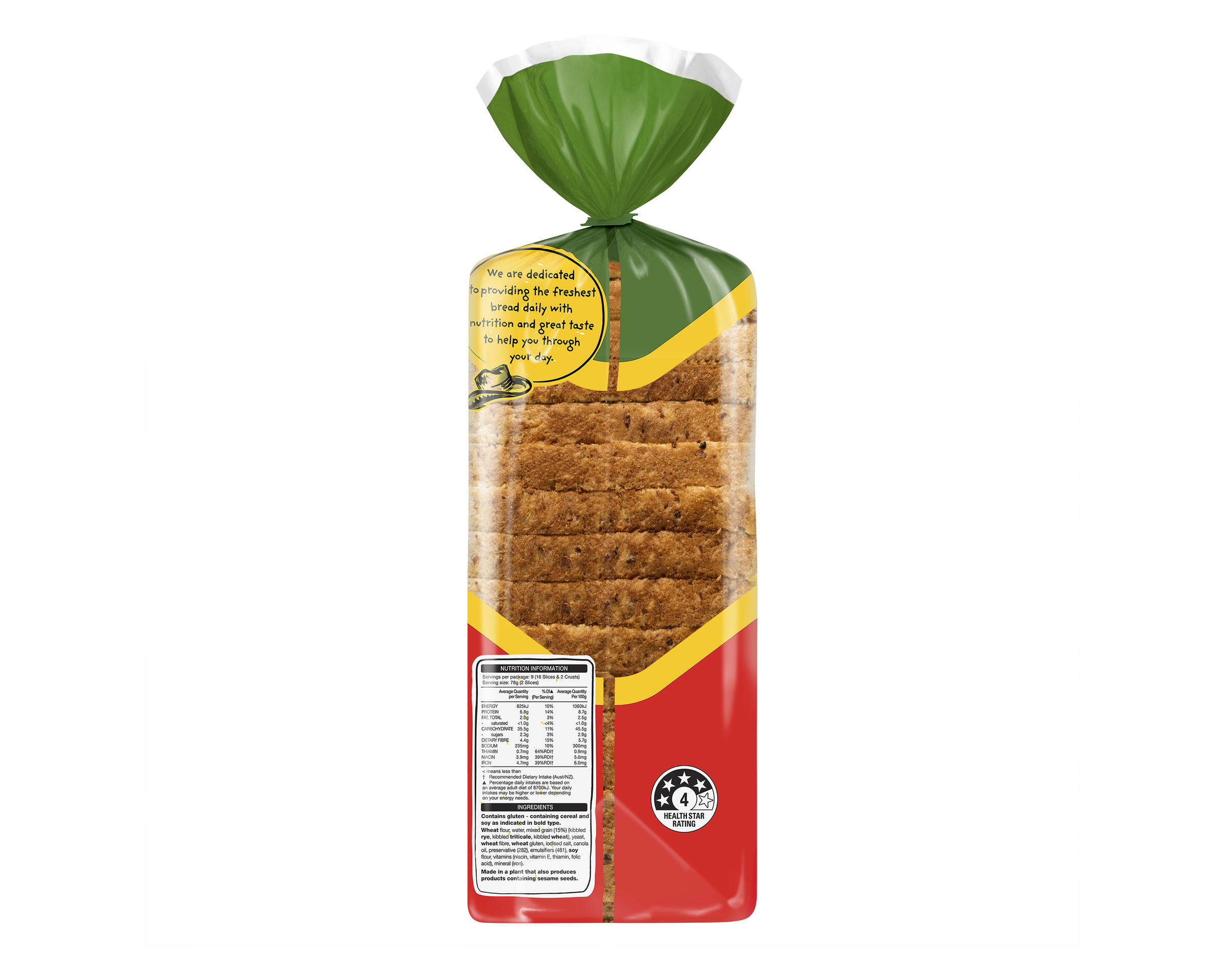 Yummy sliced multigrain bread that’s high in fibre, a source of protein & a good source of iron, thiamin and niacin. Proudly baked in Australia. Healthy eating is part of healthy living. We are dedicated to providing the freshest bread daily with nutrition and great taste to help you through your day.