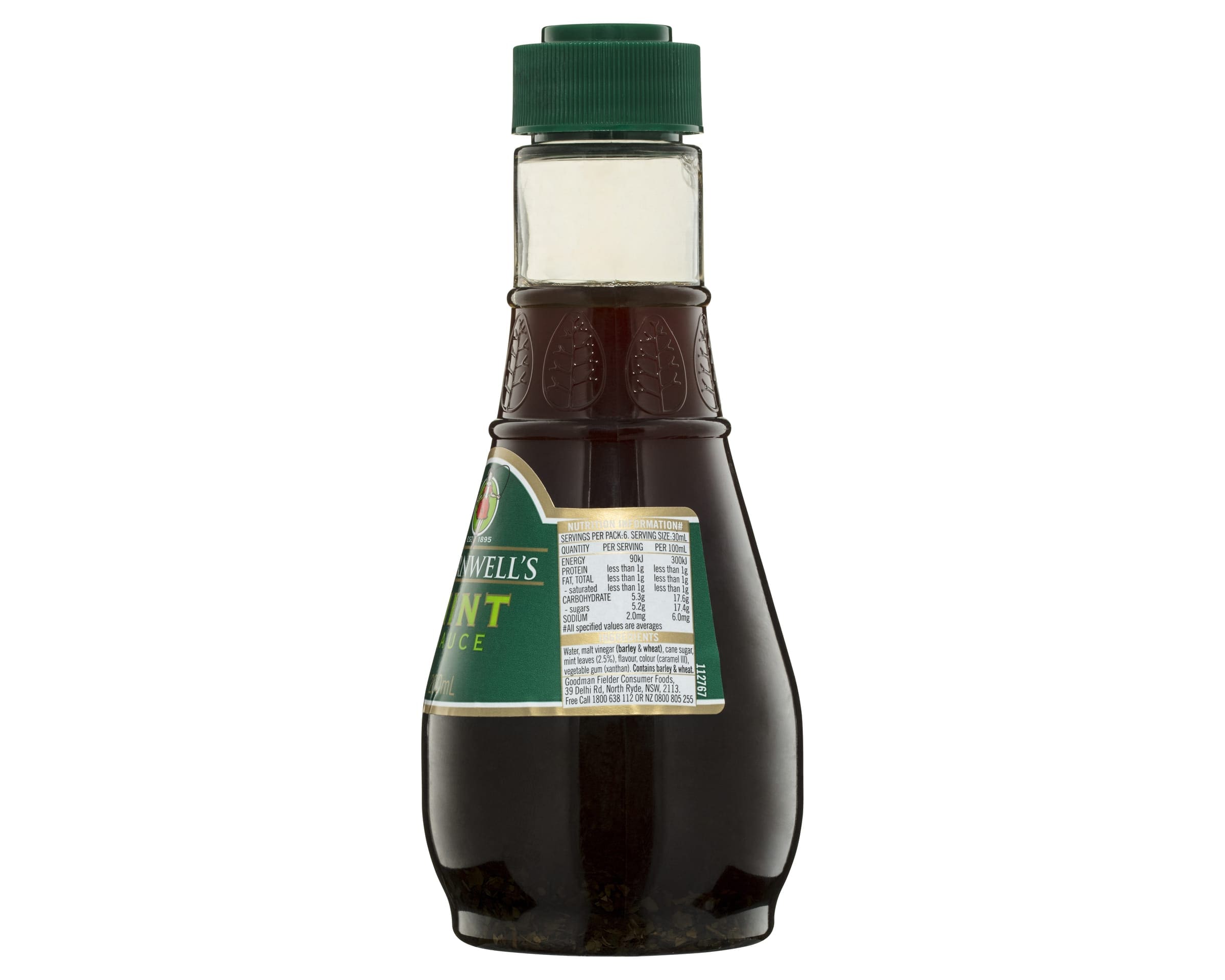 Water, Malt Vinegar (Barley & Wheat), Cane Sugar, Mint Leaves (2.5%), Flavour, Colour (Caramel III), Vegetable Gum (Xanthan).