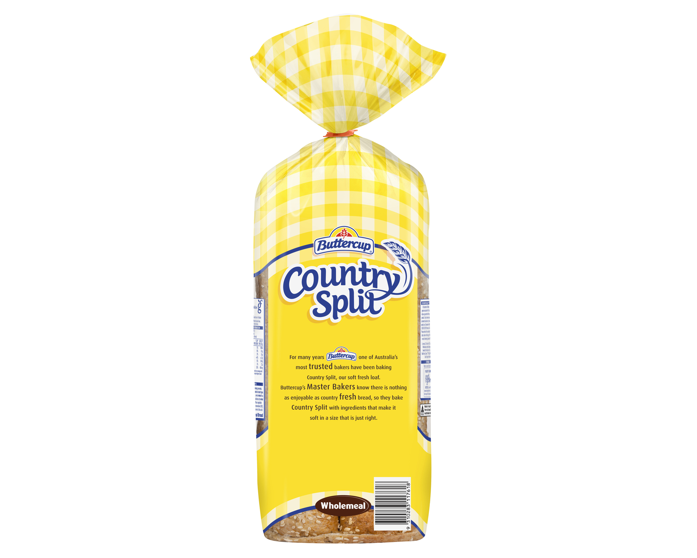 Perfectly sized for picnic and lunchbox sandwiches, Buttercup Country Split Wholemeal Bread is an essential for any kitchen. This bread is baked fresh and made extra special with a light sprinkle of sesame seeds. Buttercup Country Split Wholemeal is soft with a delicious crunch from a sprinkle of sesame seeds. High in wholegrain, this bread provides a source of protein and fibre.