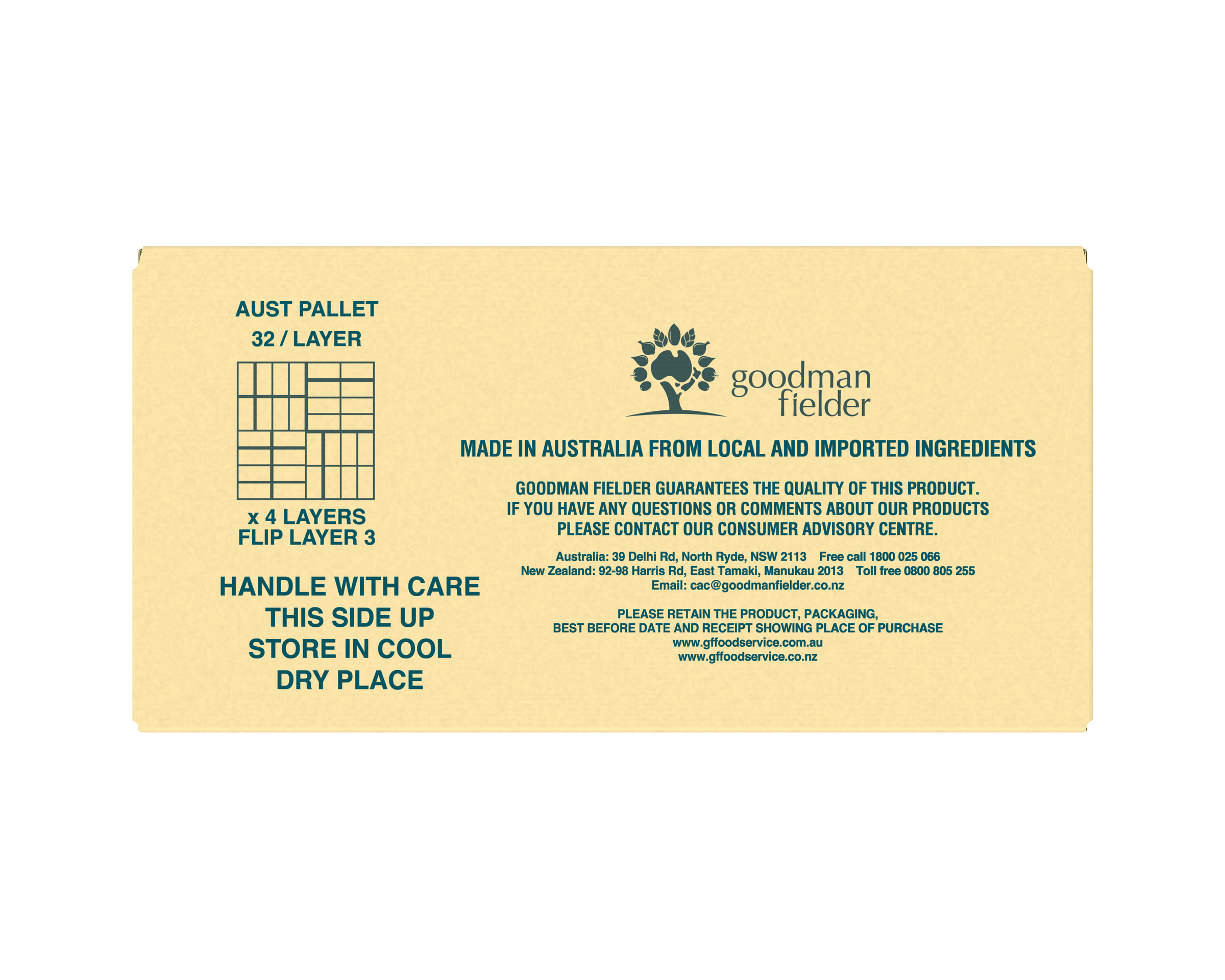 Country of Origin: Made in from at least 0 Australian ingredients