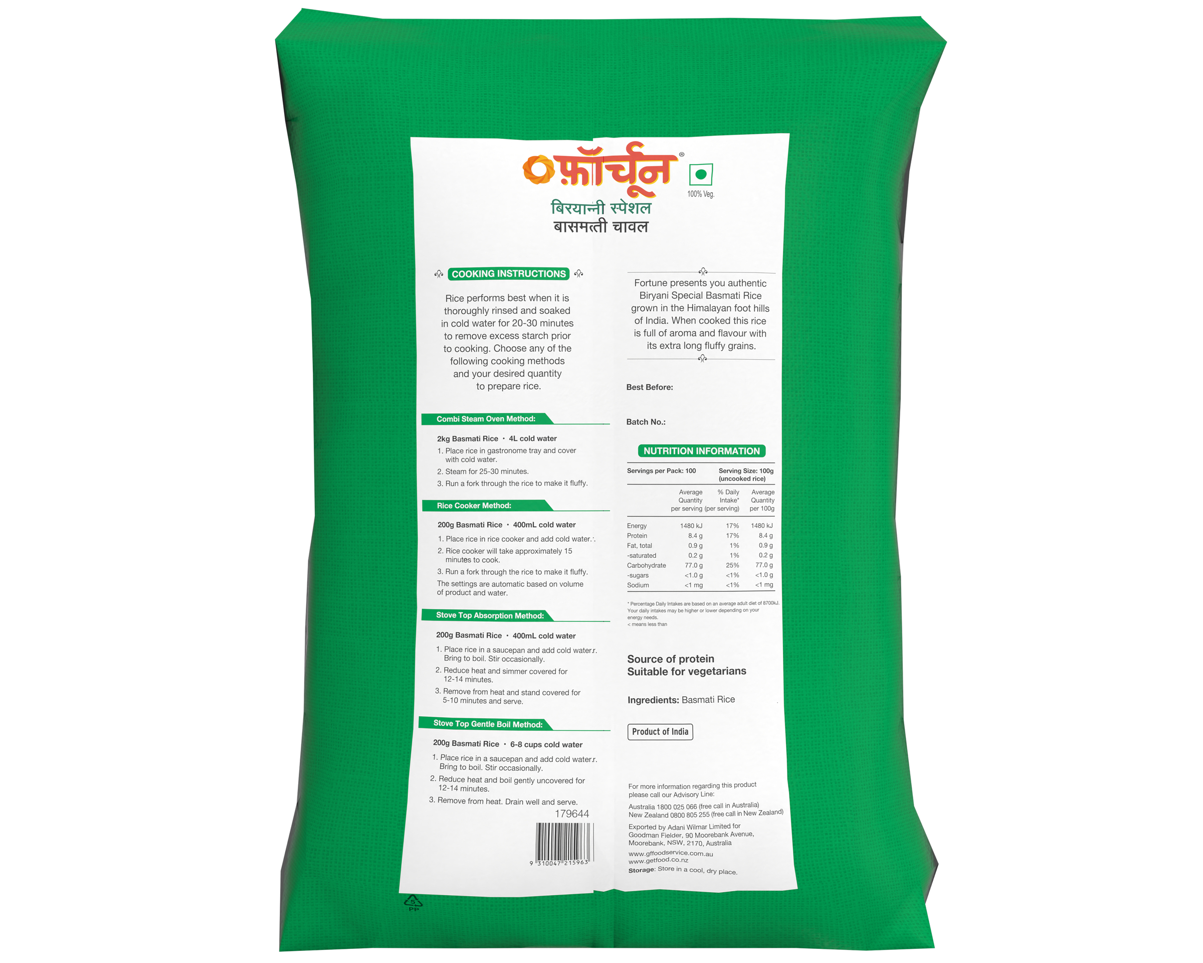 Fortune presents you authentic Biryani Special Basmati Rice grown in the Himalayan foothills of India. When cooked this rice is full of aroma and flavour with its extra long fluffy grains. .