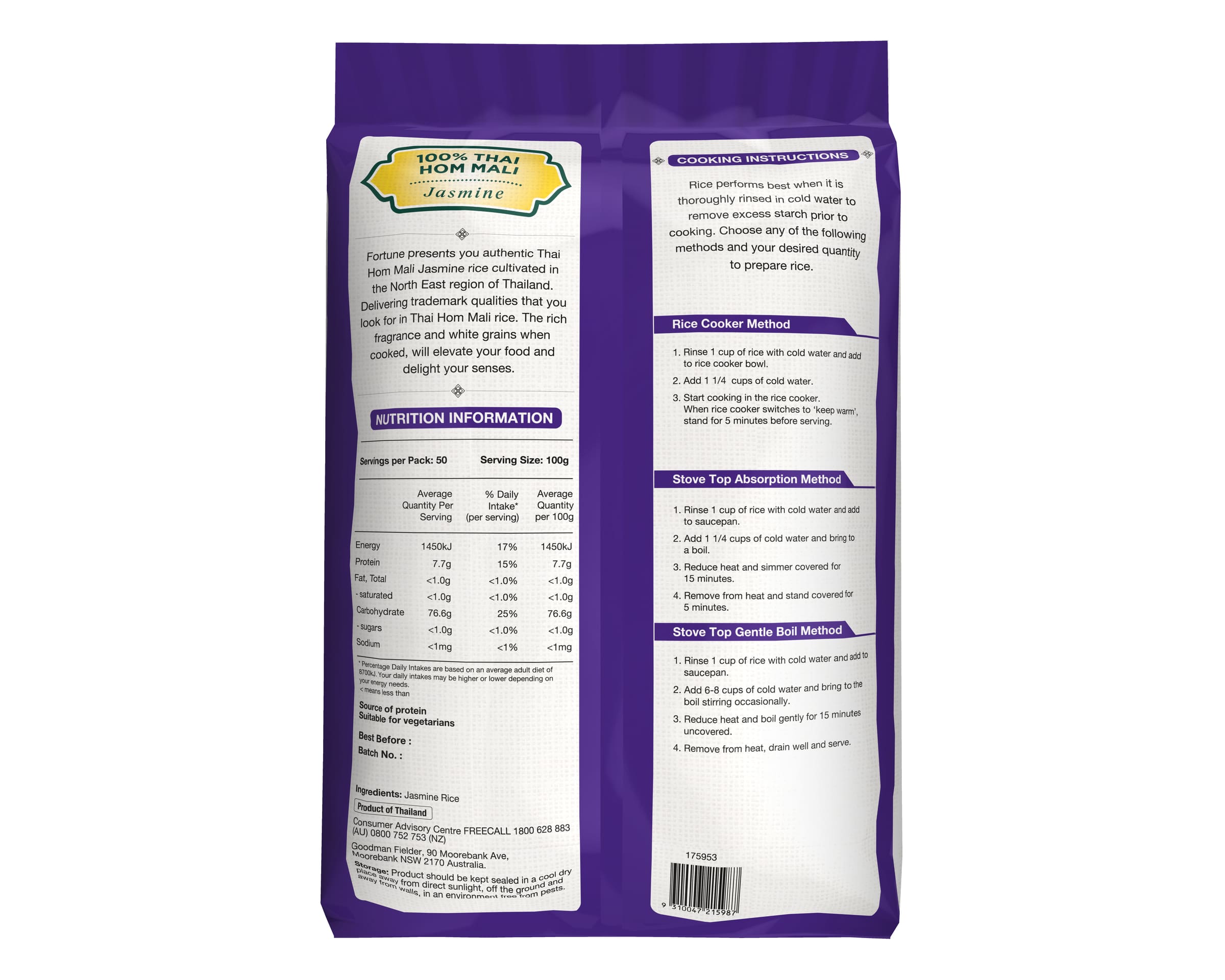 Fortune presents you authentic Thai Hom Mali Jasmine rice cultivated in the North East region of Thailand.