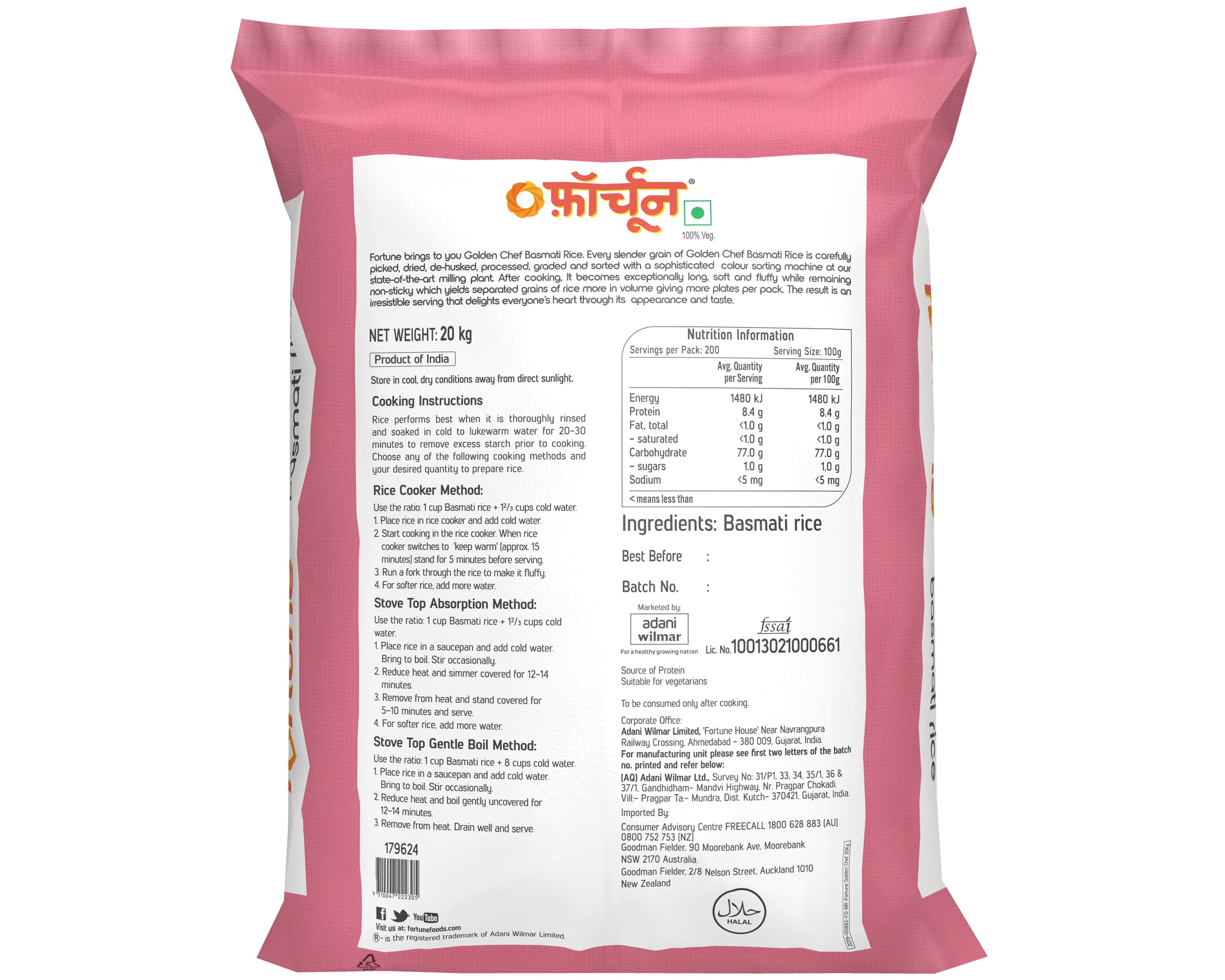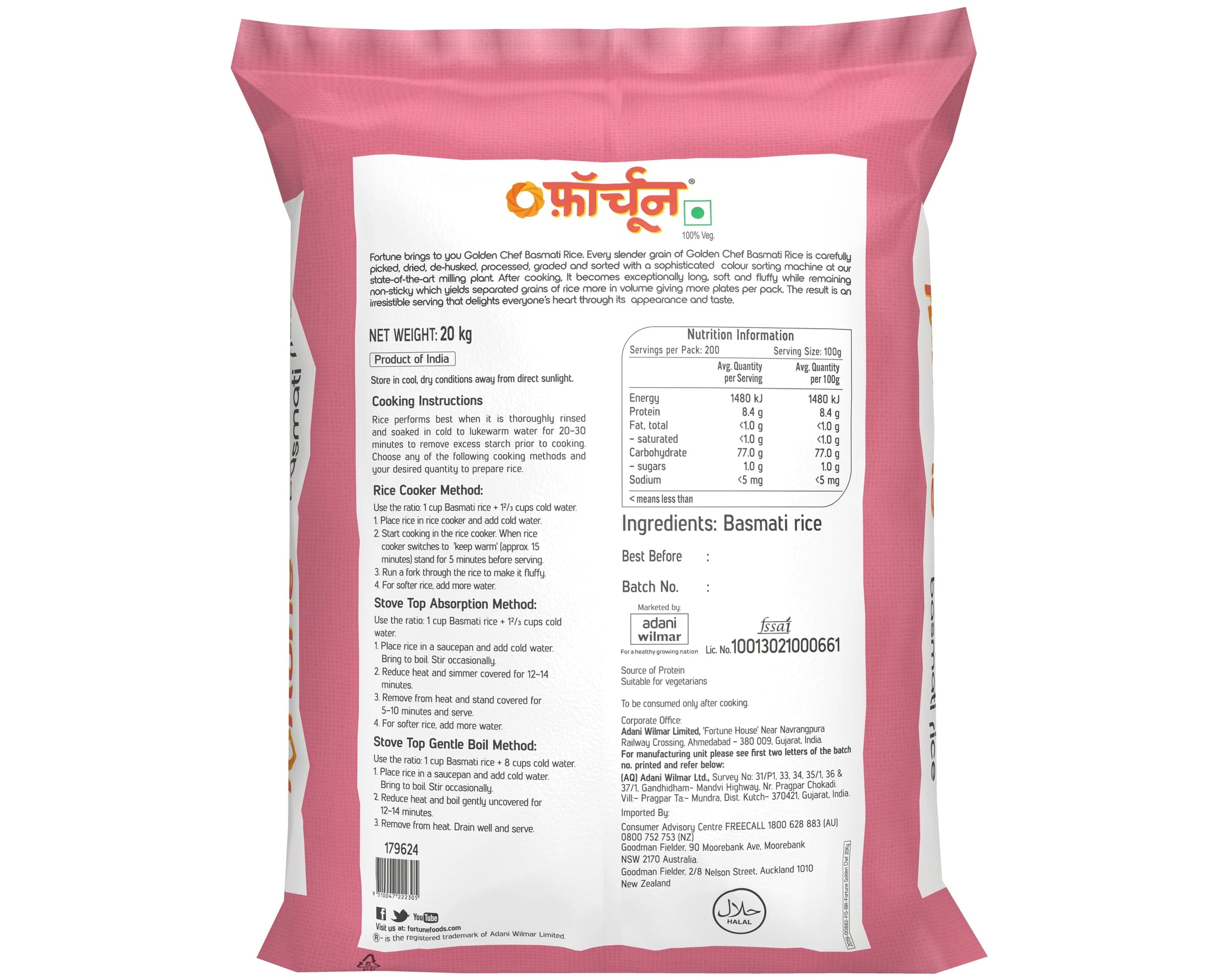 Fortune brings to you Golden Chef Basmati Rice. Every slender grain of Golden Chef Basmati Rice is carefully picked, dried, de-husked, processed, graded and sorted with a sophisticated colour sorting machine at our state-of-the-art milling plant. After cooking, It becomes exceptionally long, soft and fluffy while remaining non-sticky which yields separated grains of rice more in volume giving more plates per pack. The result is an irresistible serving that delights everyone’s heart through its appearance and taste.