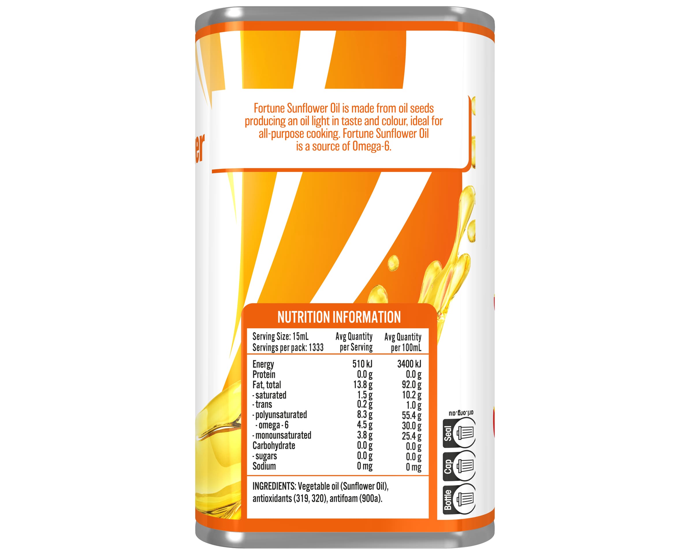 Fortune Sunflower Oil is made from oil seeds producing an oil light in taste and colour, ideal for all-purpose cooking. Fortune Sunflower Oil is a source of Omega-6. .