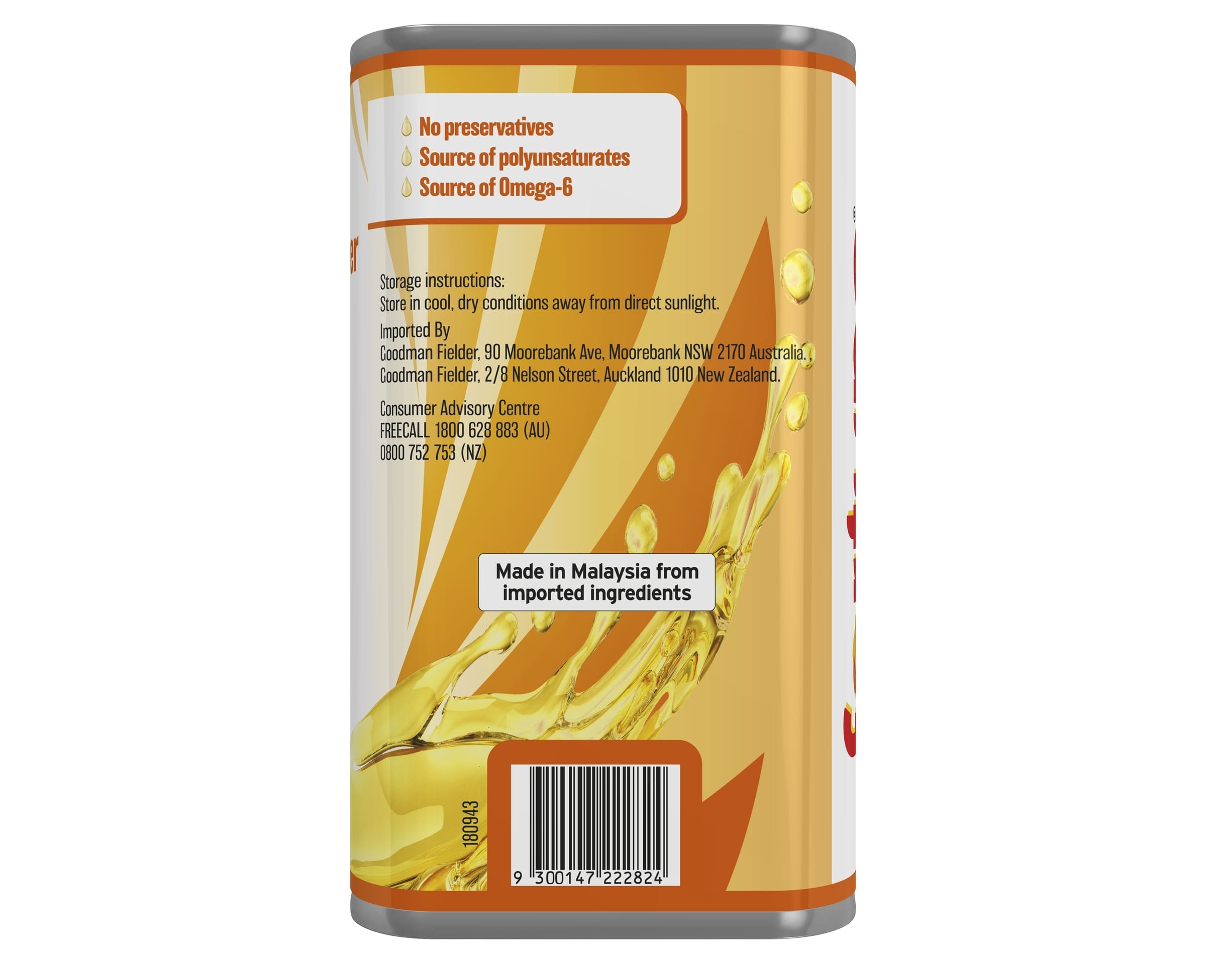 Country of Origin: Made in Malaysia from at least 0 Australian ingredients