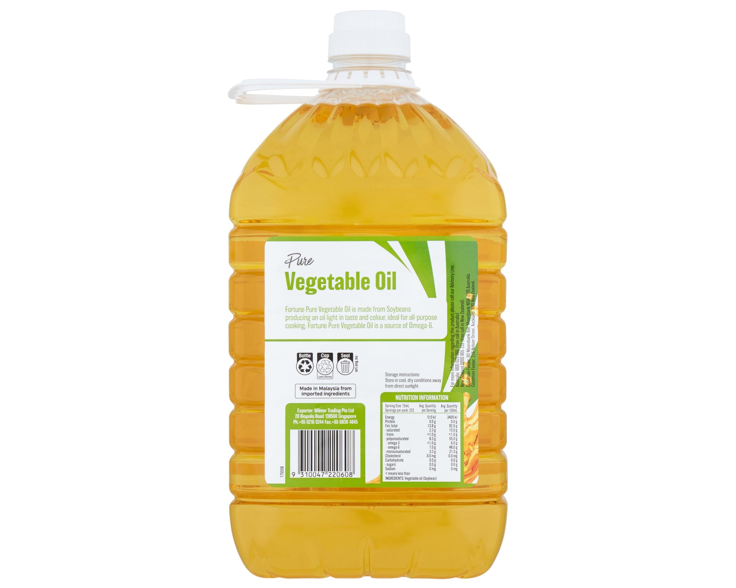 Fortune Pure Vegetable Oil is made from Soybeans producing an oil light in taste and colour, ideal for all-purpose cooking. Fortune Pure Vegetable Oil is a source of Omega-6. .