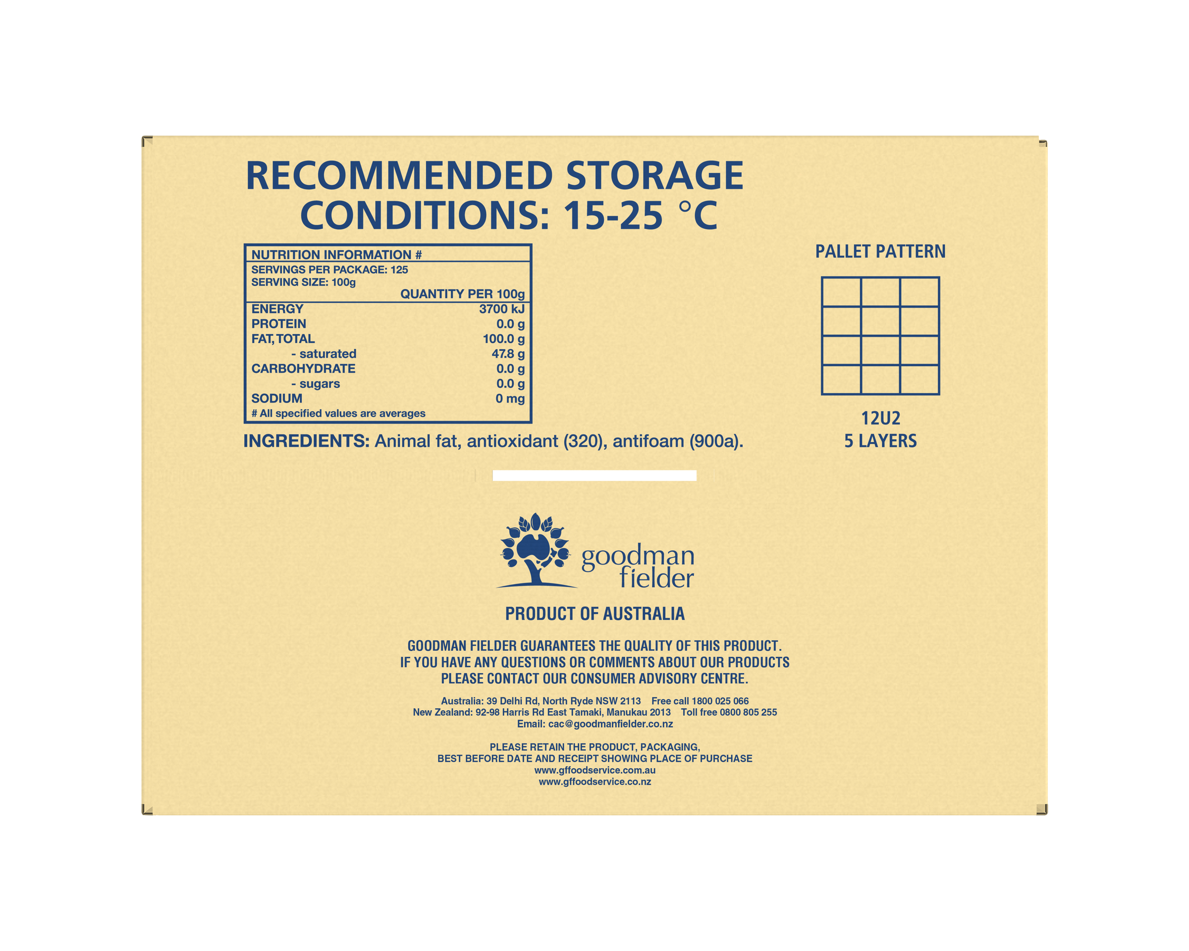 Animal Fat, Antioxidant (320), Antifoam (900a)