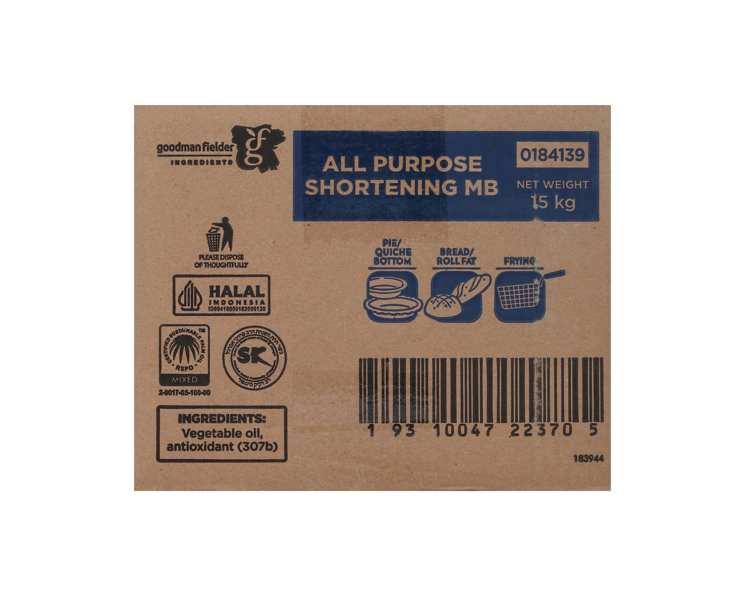 GFIG All Purpose Shortening MB 15kg (Wilshort 1250) is a shortening derived from refined, bleached and deodorized palm oil and its fraction. .