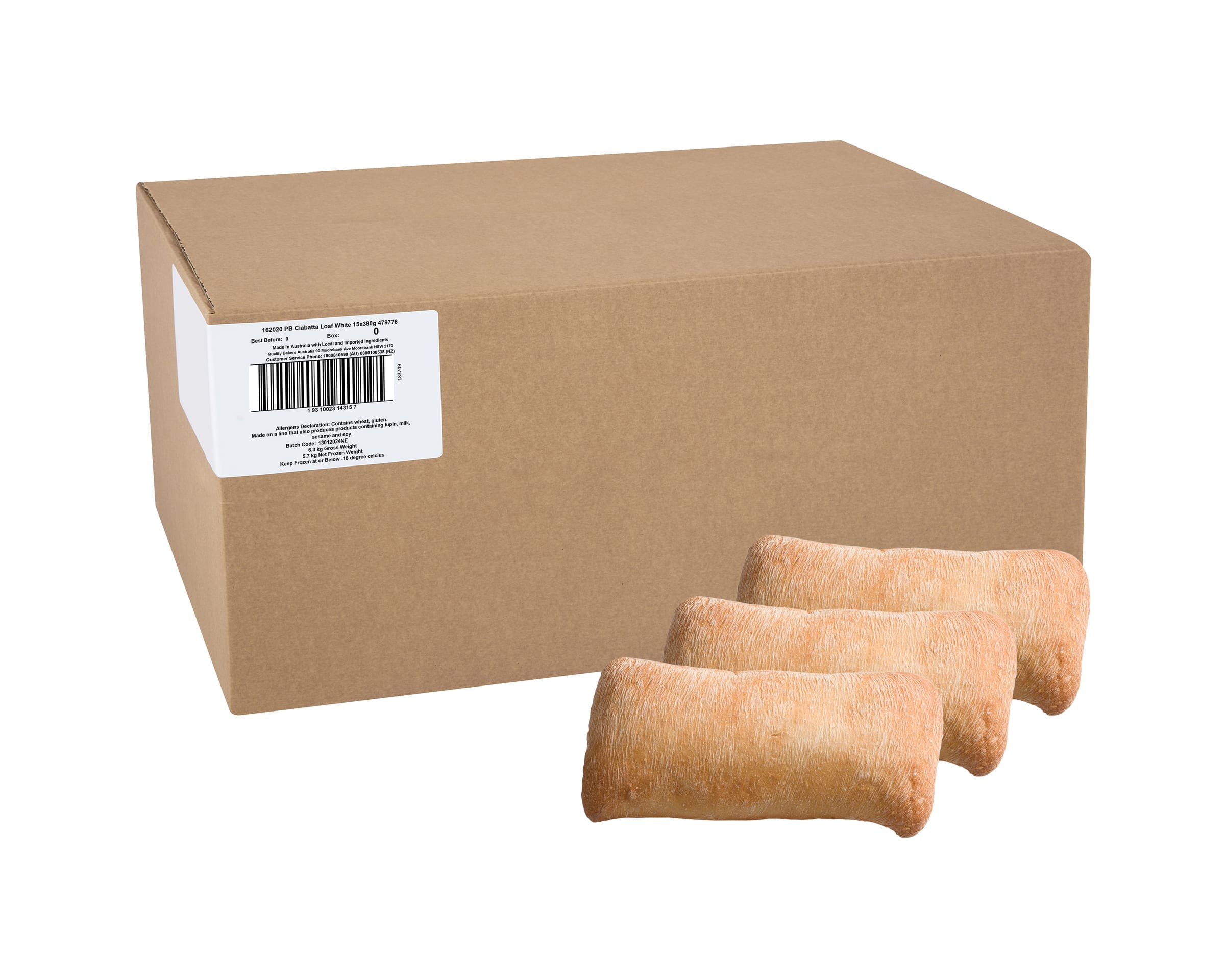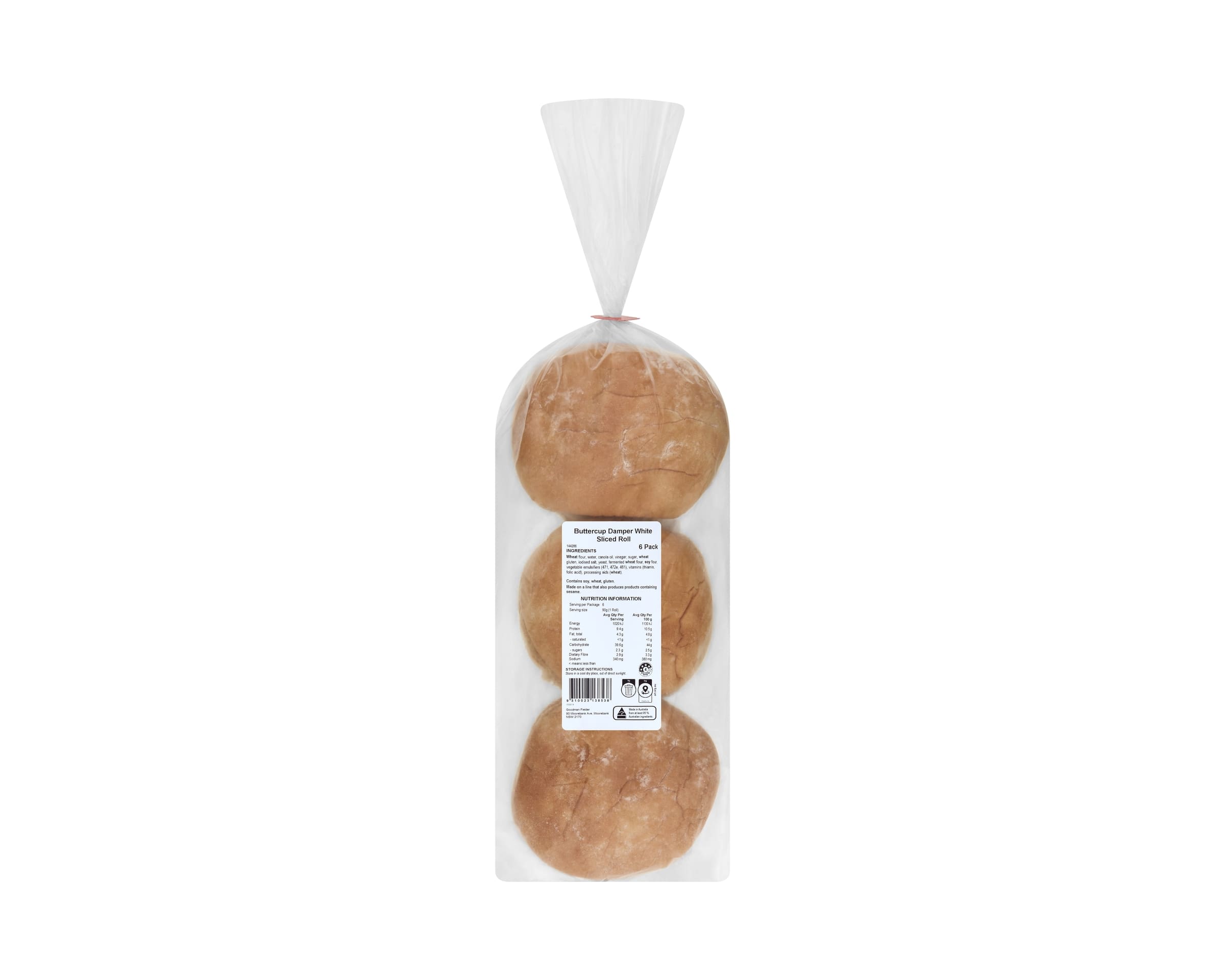 Wheat Flour, Water, Raising Agents (500, 450), Iodised Salt, Dextrose, Preservatives (282, 234), Vitamins (Thiamin, Folic Acid)