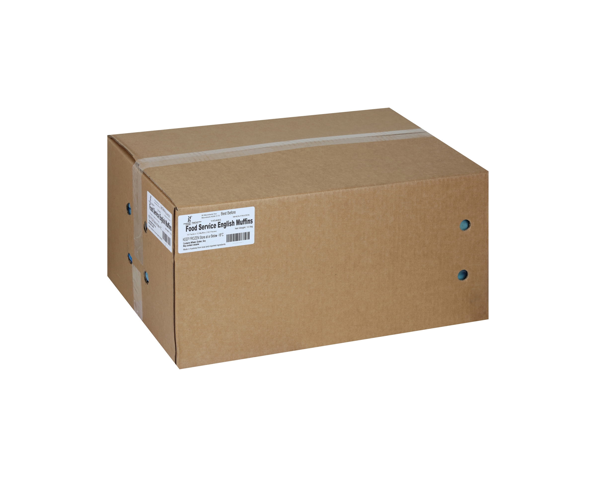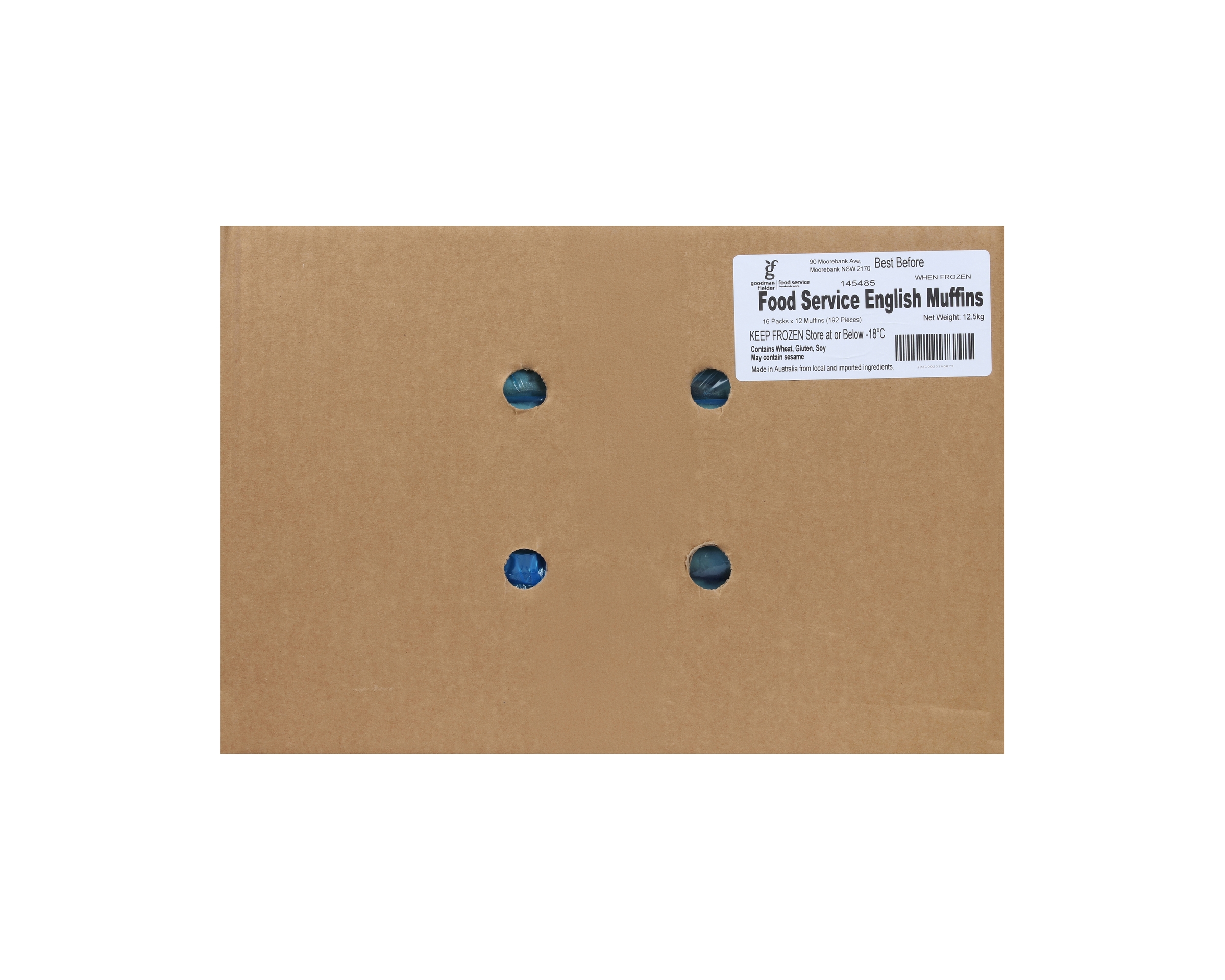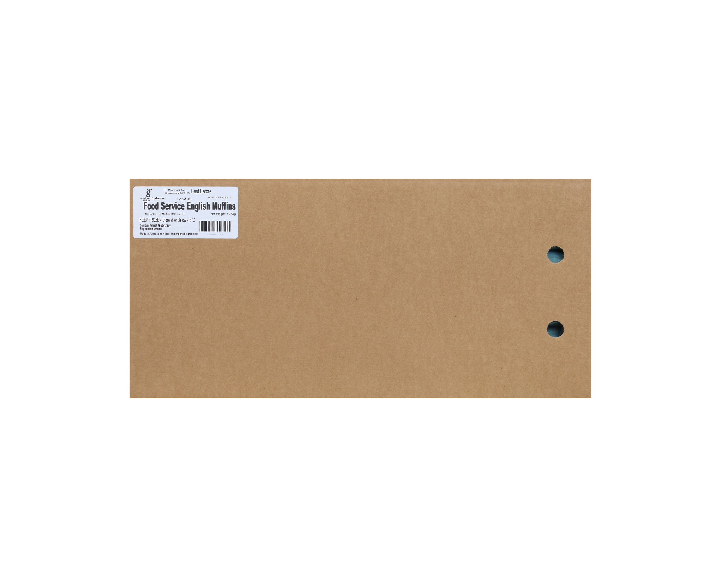 Goodman Fielder English Muffins are white muffins baked on a hot griddle and coated with ground maize. Muffins are packaged in bundles of 12 for your conveniences. .