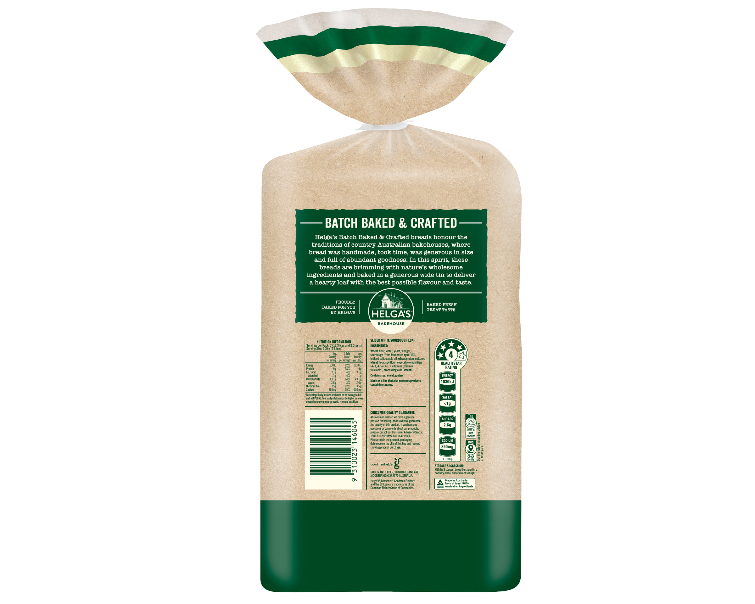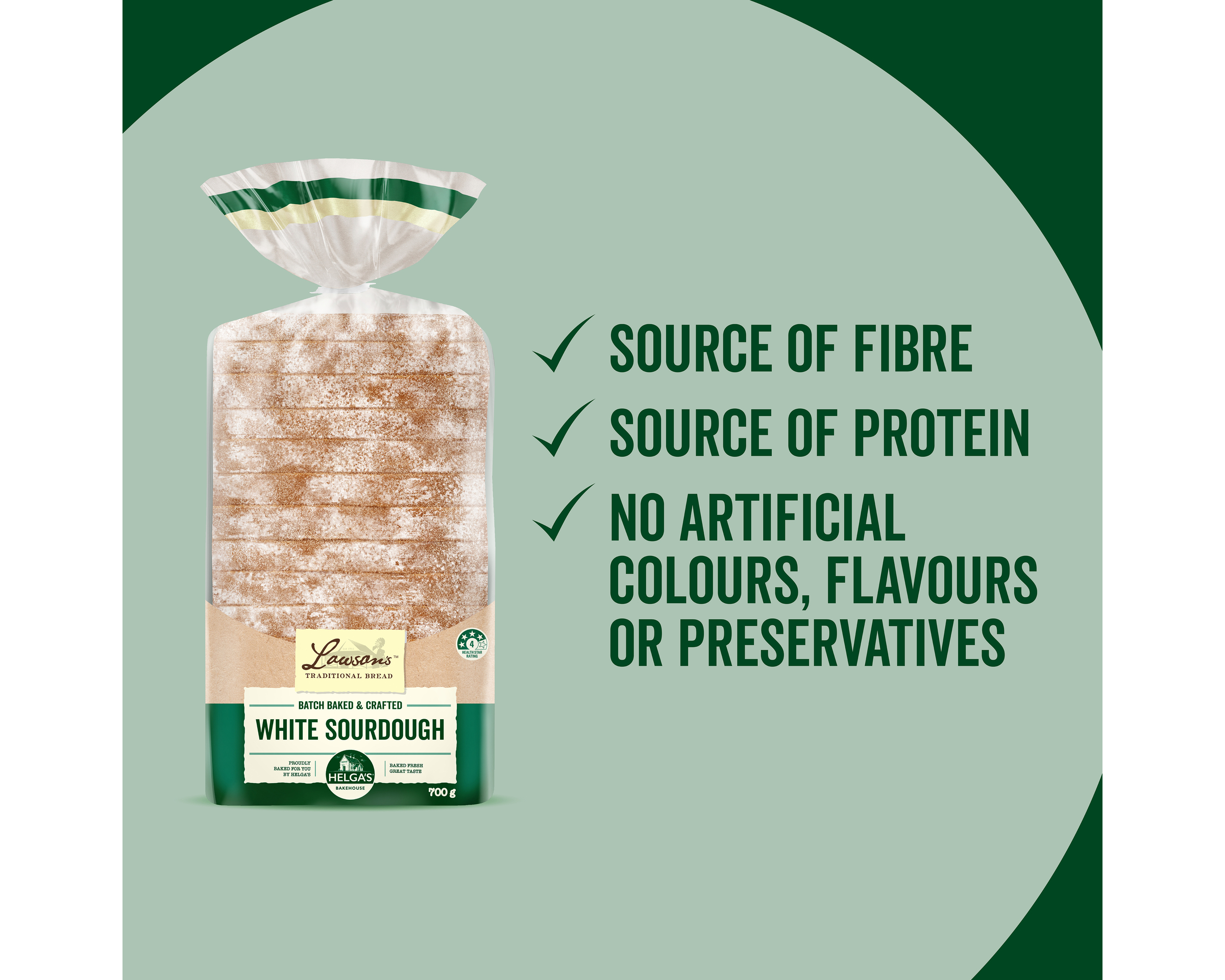 Wheat Flour, Water, Yeast, Vinegar, Sourdough (from Fermented Rye) (1%), Iodised Salt, Canola Oil, Wheat Gluten, Cultured Wheat Flour, Soy Flour, Vegetable Emulsifiers (471, 472e, 481), Vitamins (Thiamin, Folic Acid), Processing Aids (Wheat)