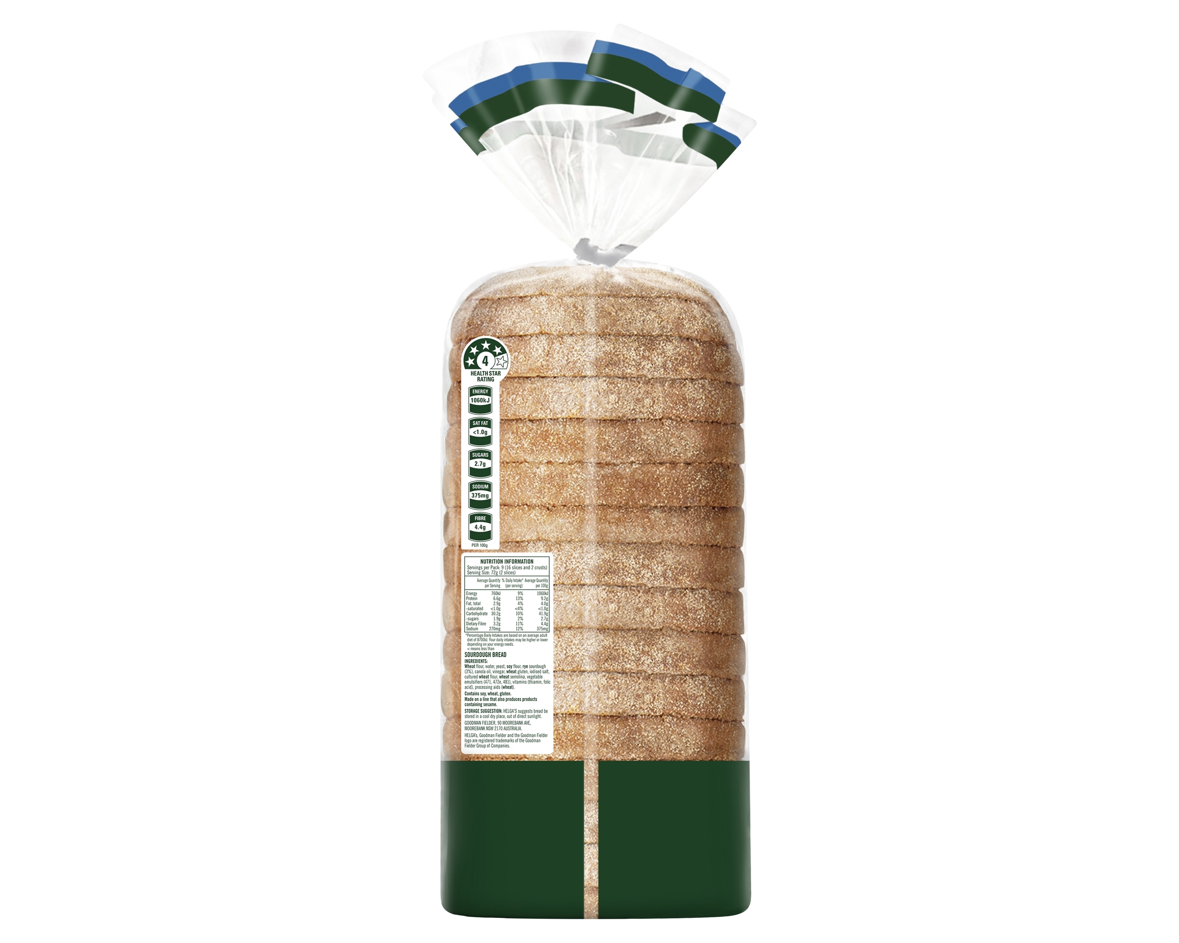 Wheat Flour, Water, Yeast, Soy Flour, Rye Sourdough (3%), Canola Oil, Vinegar, Wheat Gluten, Iodised Salt, Cultured Wheat Flour, Wheat Semolina, Vegetable Emulsifiers (471, 472e, 481), Vitamins (Thiamin, Folic Acid), Processing Aids (Wheat)