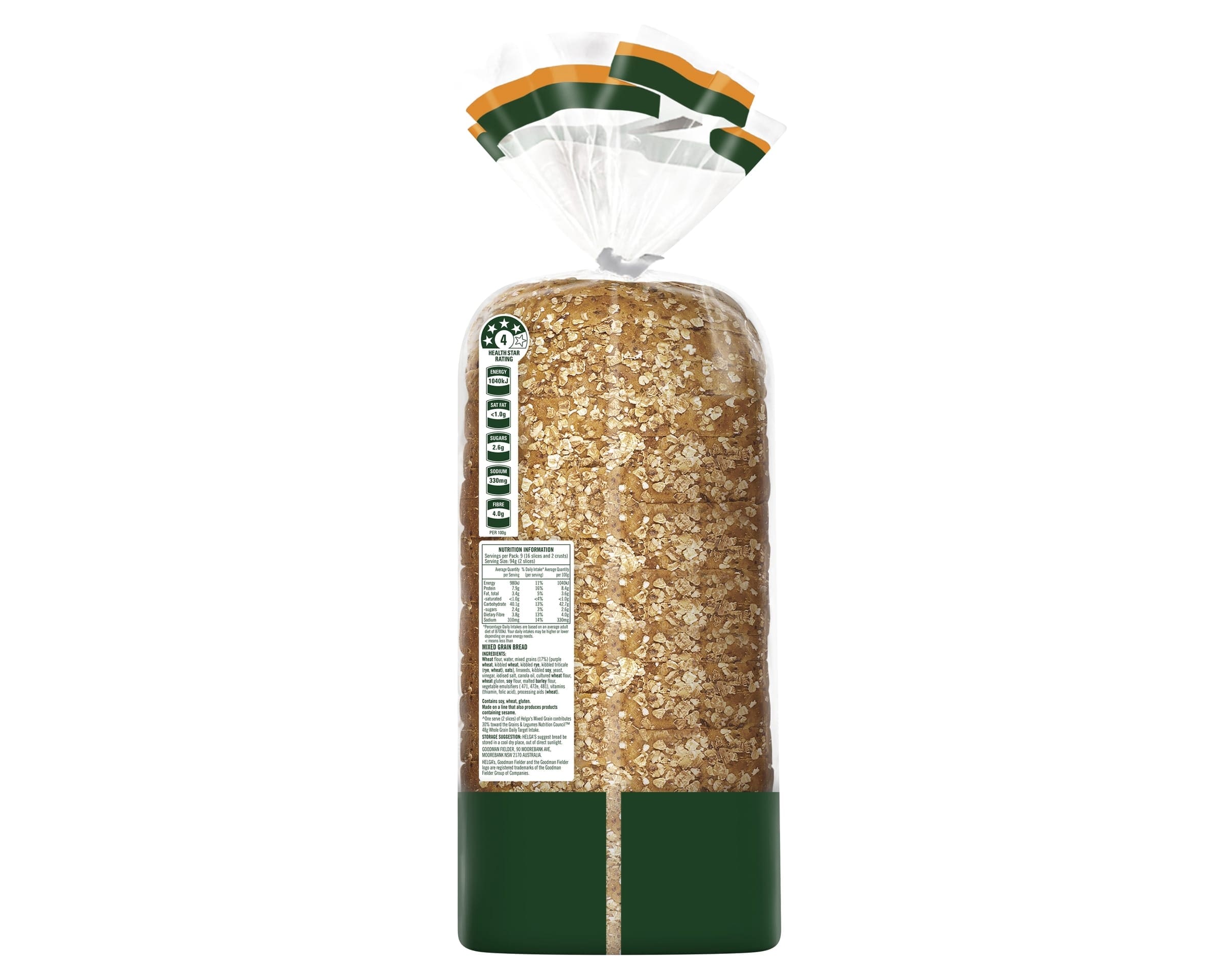 Wheat Flour, Water, Mixed Grains (17%) Purple Wheat, Kibbled Wheat, Kibbled Rye, Kibbled Triticale (Rye, Wheat), Oats, Linseeds, Kibbled Soy, Yeast, Vinegar, Iodised Salt, Canola Oil, Cultured Wheat Flour, Wheat Gluten, Soy Flour, Malted Barley Flour, Vegetable Emulsifiers (471, 472e, 481), Vitamins (Thiamin, Folic Acid), Processing Aids (Wheat)