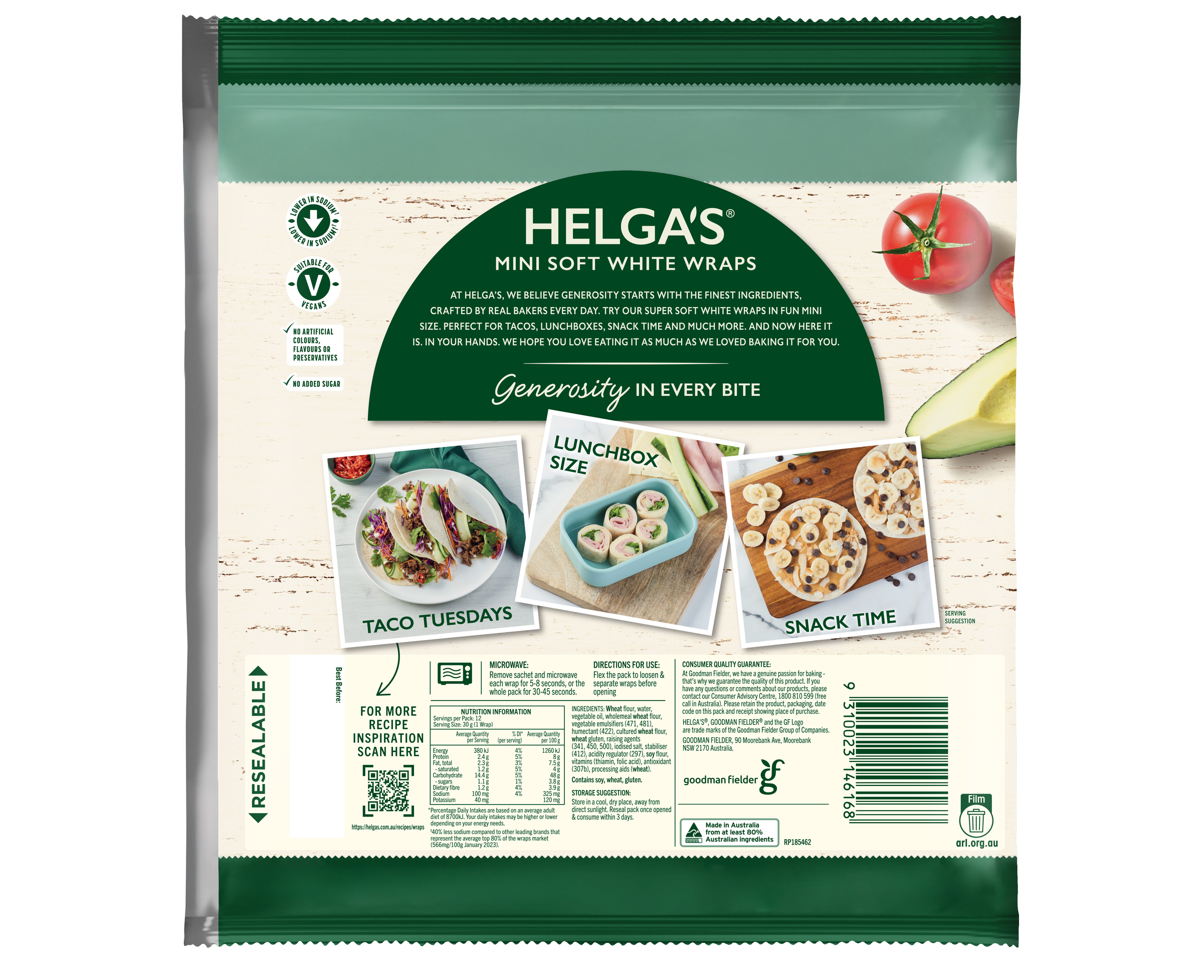 At Helga’s, we believe generosity starts with the finest ingredients, crafted by real bakers every day. Try our super soft white wraps in fun mini size. Perfect for tacos, lunchboxes, snack time and much more. And now here it is.