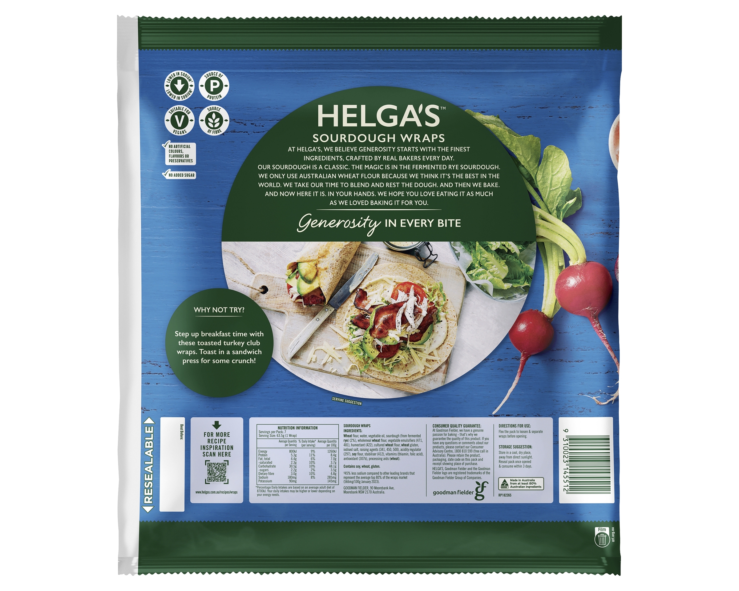 †45% less sodium compared to other leading brands that represent the average top 80% of the wraps market (566mg/100g January 2023).