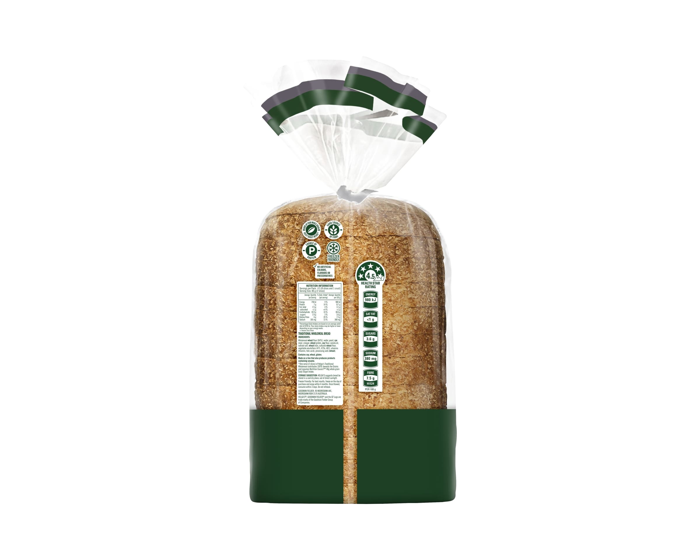 Wholemeal Wheat Flour (64%), Water, Yeast, Rye Meal, Vinegar, Wheat Gluten, Soy Flour, Canola Oil, Iodised Salt, Wheat Bran, Cultured Wheat Flour, Vegetable Emulsifiers (471, 472e, 481), Vitamins (Thiamin, Folic Acid), Processing Aids (Wheat)
