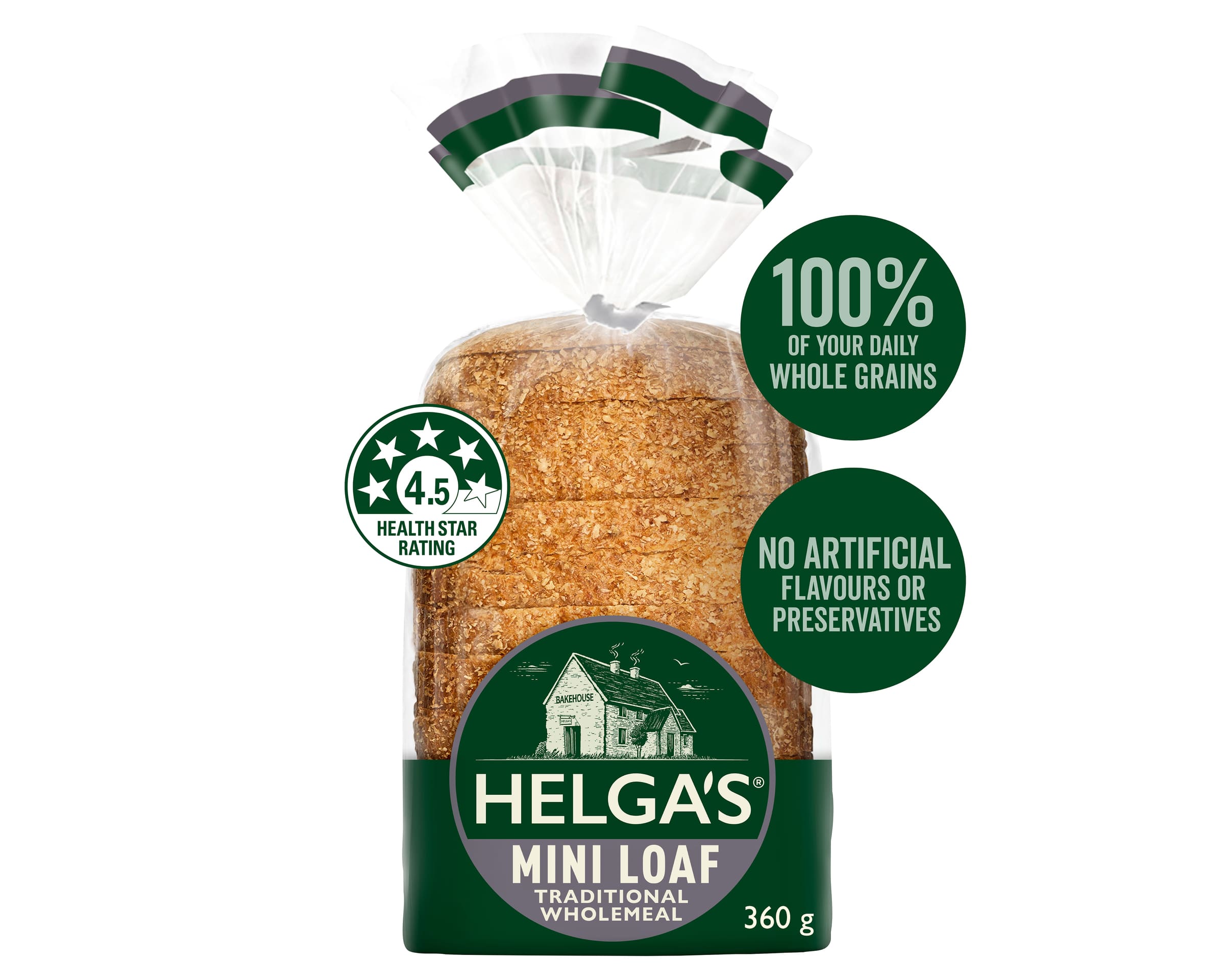 ^One serve (2 slices) of Helga’s Traditional Wholemeal contributes 100% towards the Grains and Legumes Nutrition Council™ 48g whole grain Daily Target Intake.