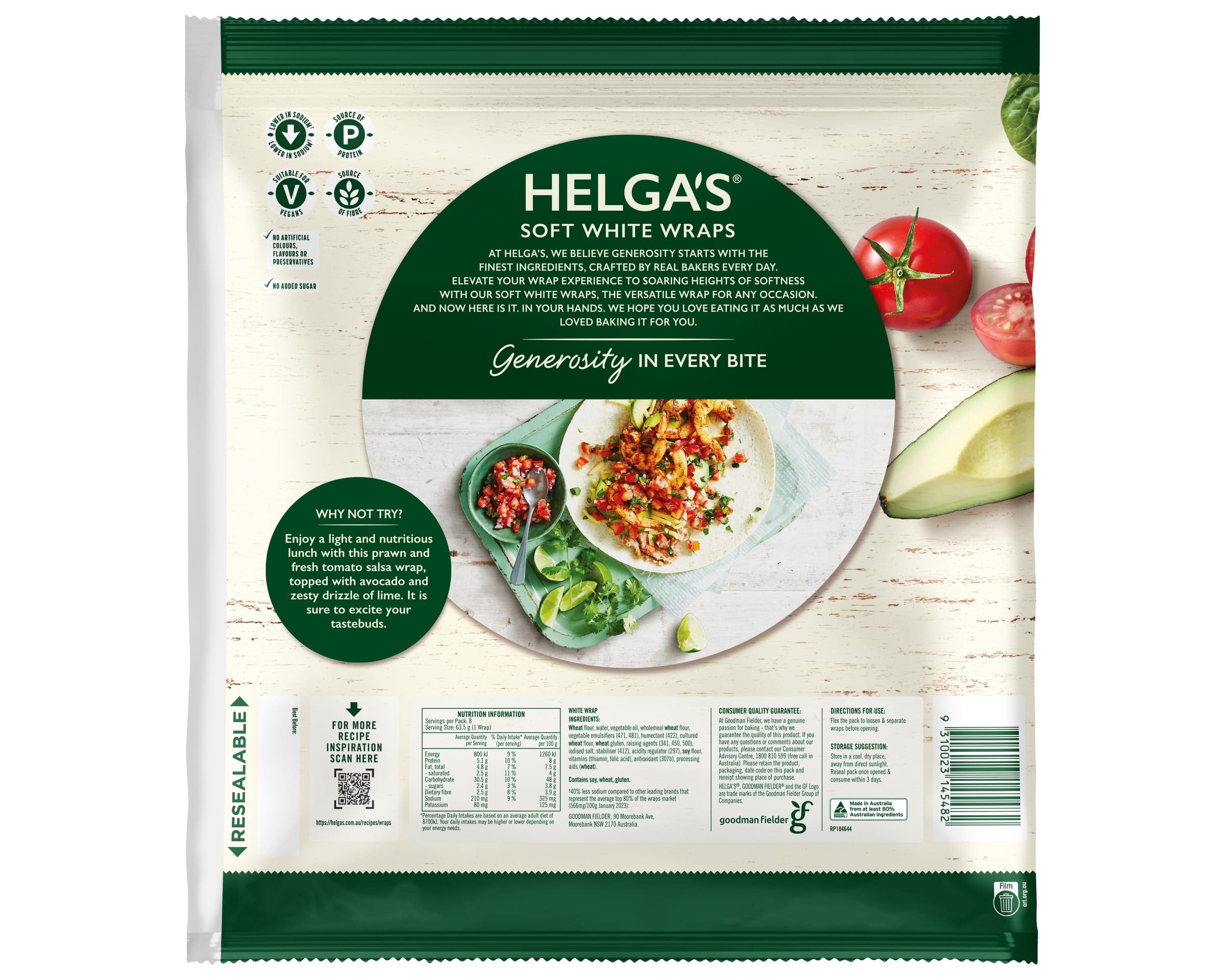 At Helga’s, we believe generosity starts with the finest ingredients, crafted by real bakers every day. Elevate your wrap experience to new heights of softness with our soft white wraps, the versatile wrap for any occasion. And now here it is.