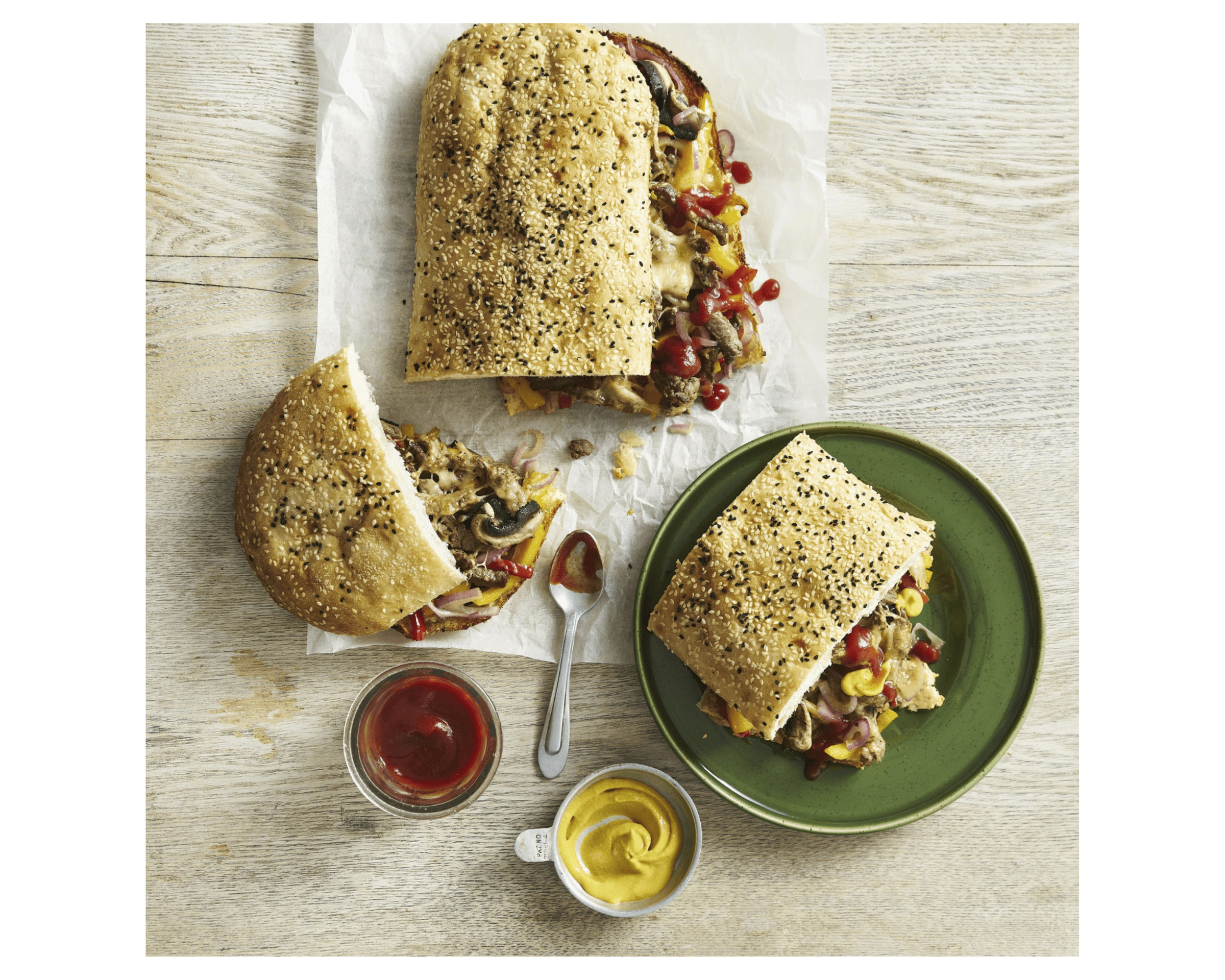 Wheat flour, water, sesame seeds, vinegar, olive oil, nigella seeds, iodised salt, yeast, soy flour, preservative (282), wheat gluten, malt wheat flour, wheat semolina,vegetable emulsifiers (471, 472e, 481), vegetable gum (412), vitamins (thiamin, folate), processing aids (wheat).