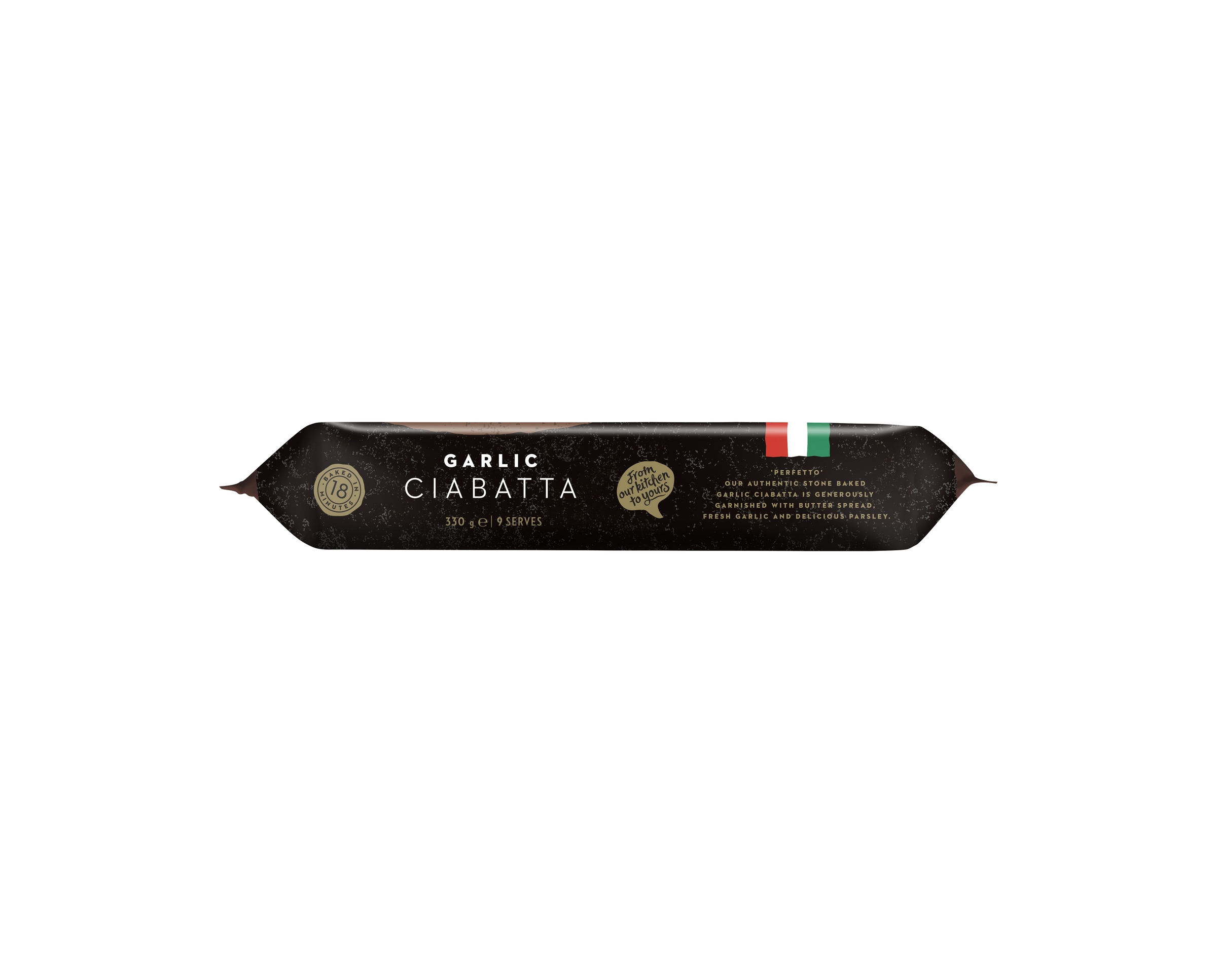 Our authentic stone baked garlic ciabatta is generously garnished with butter spread, fresh garlic and delicious parsley. .