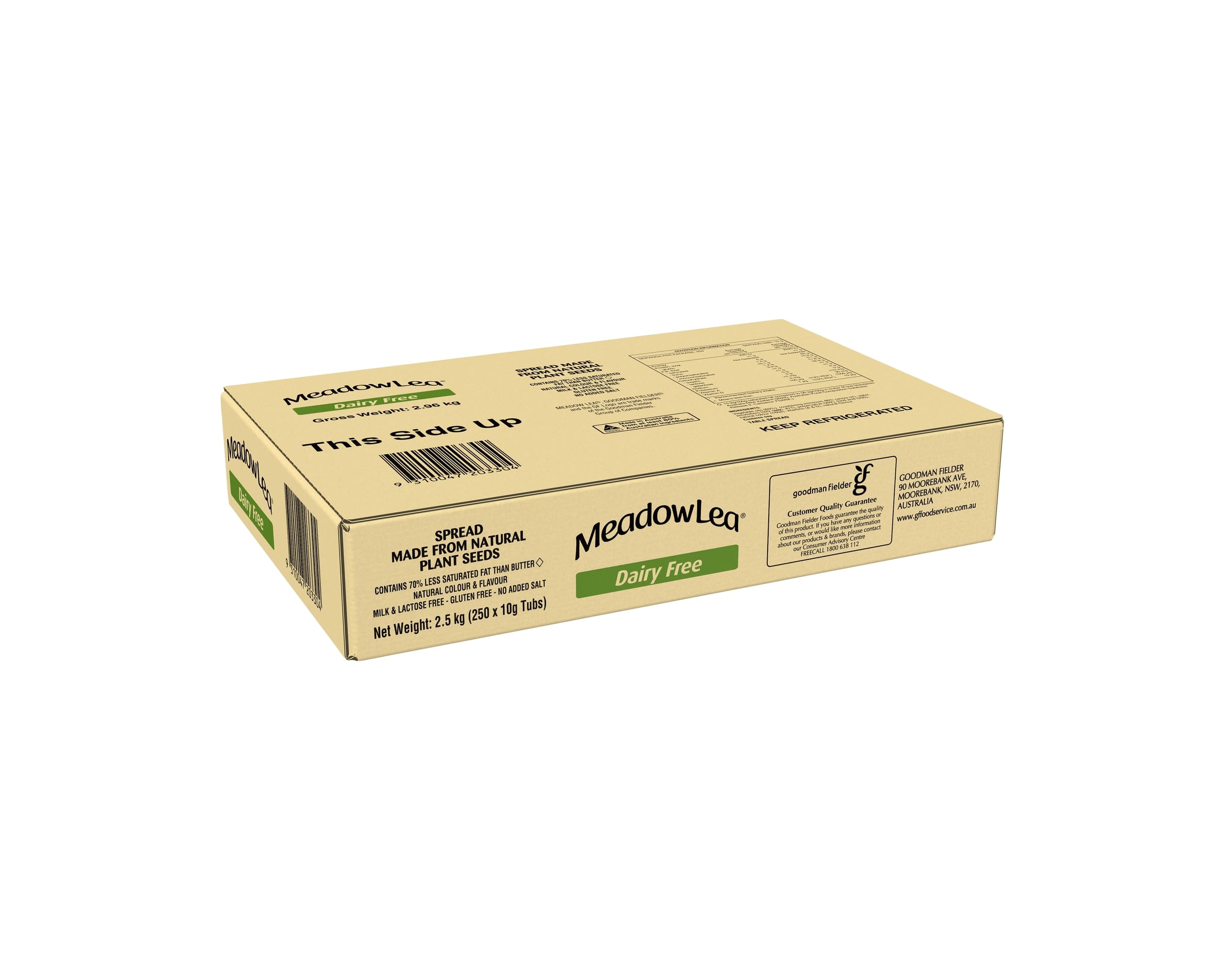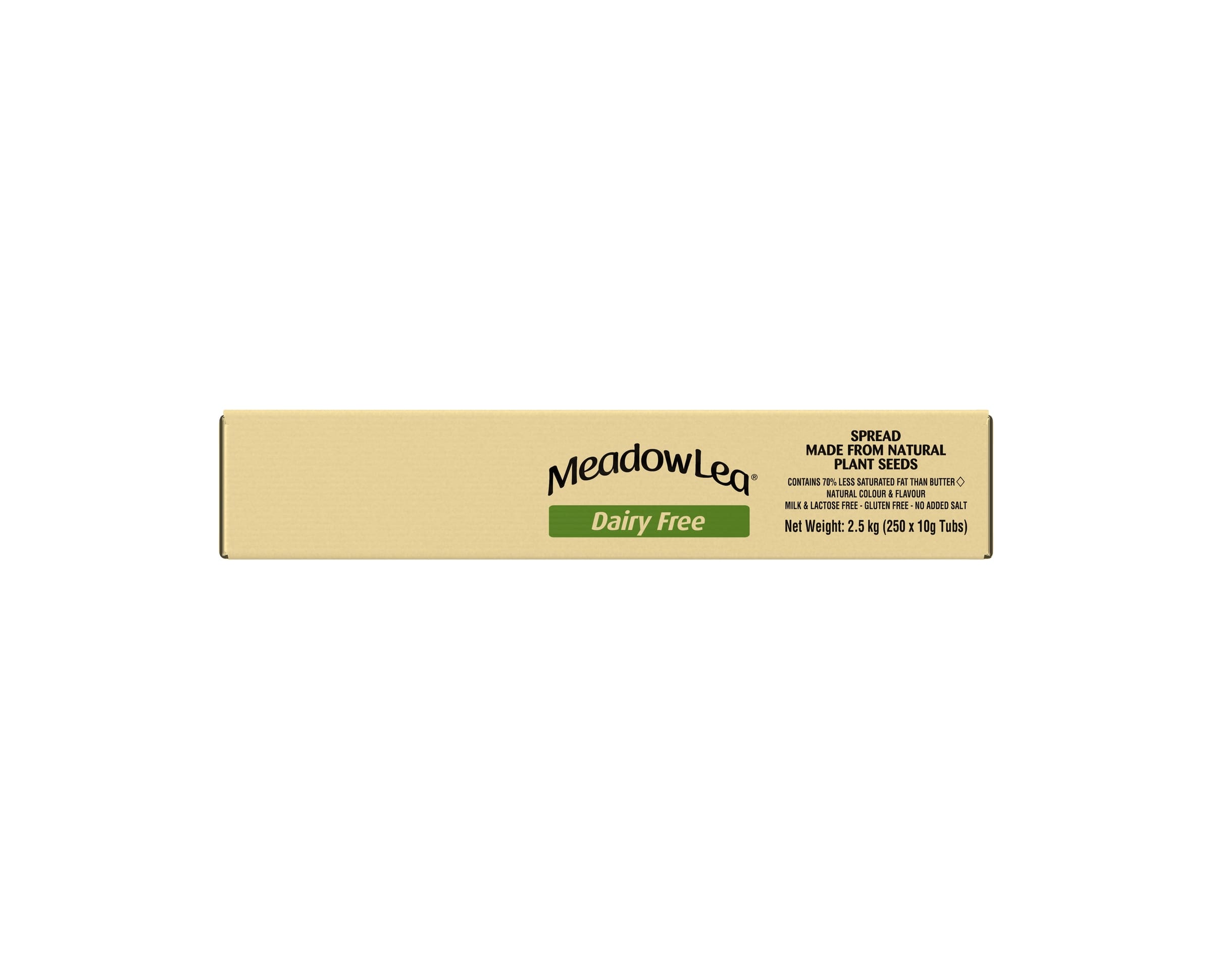 Made from natural plant seeds, Meadow Lea Dairy Free portion packs contain 70% less saturated fat than butter^, no added salt and are milk & lactose free.