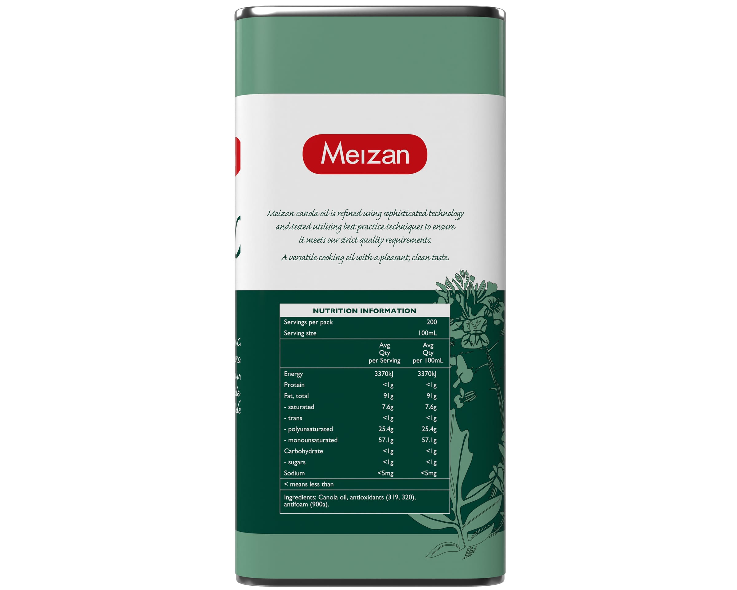 Meizan Canola Oil is a monounsaturated oil. It is a versatile oil, suitable for shallow and deep frying.