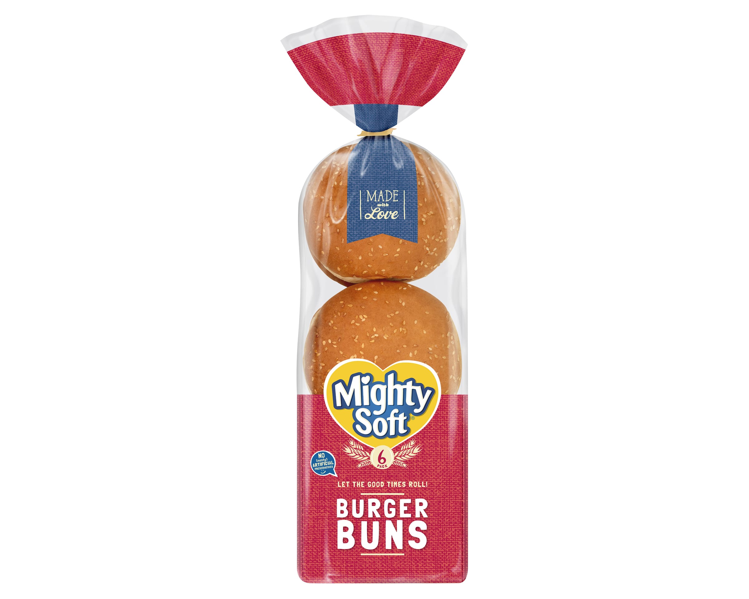 Made softer, naturally. Make the ultimate burger with Mighty Soft Hamburger Buns. Big, soft and delicious, these buns come in a six pack perfect for sharing with family and friends. Mighty Soft Hamburger Buns are fantastic for family meals, backyard BBQs or lunches on the go.