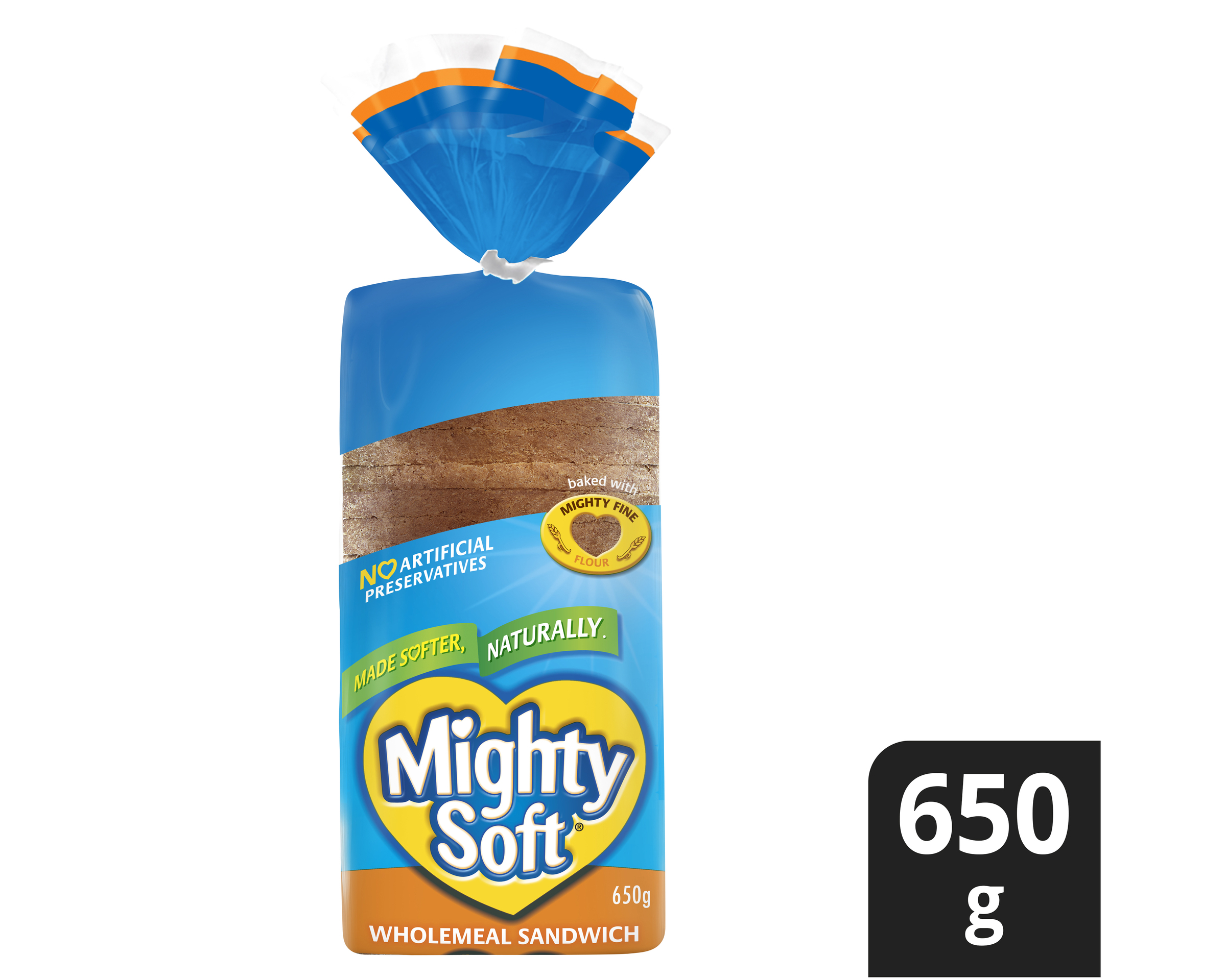 Mighty Soft is the soft wholemeal bread you love because it’s baked with mighty fine flour to take on the toughest of bread challenges! Best of all it’s baked with good, wholesome ingredients and contains no artificial preservatives, no added sugar and is made with unbleached flour. That’s why we’re Australia’s favourite ol’ softie.