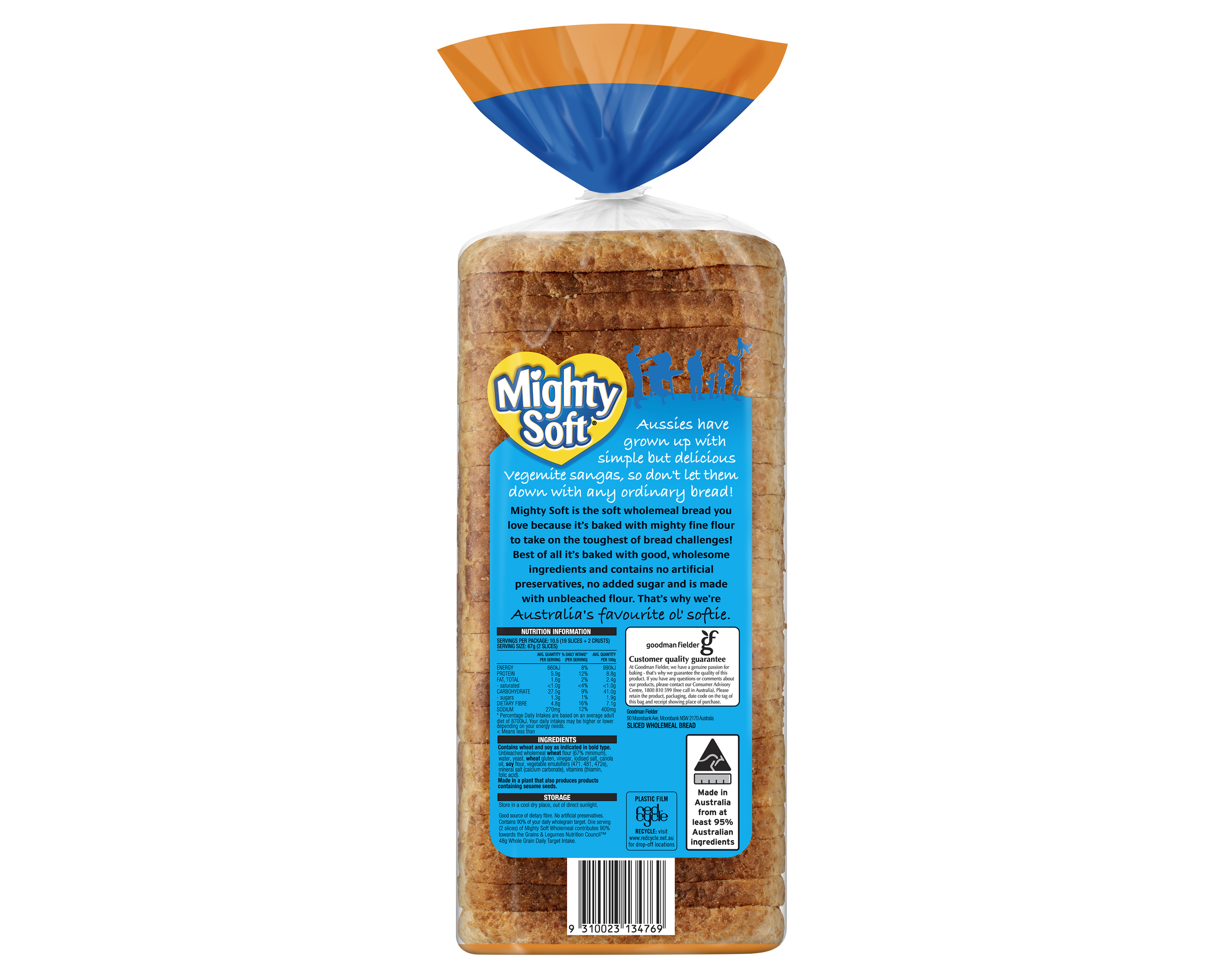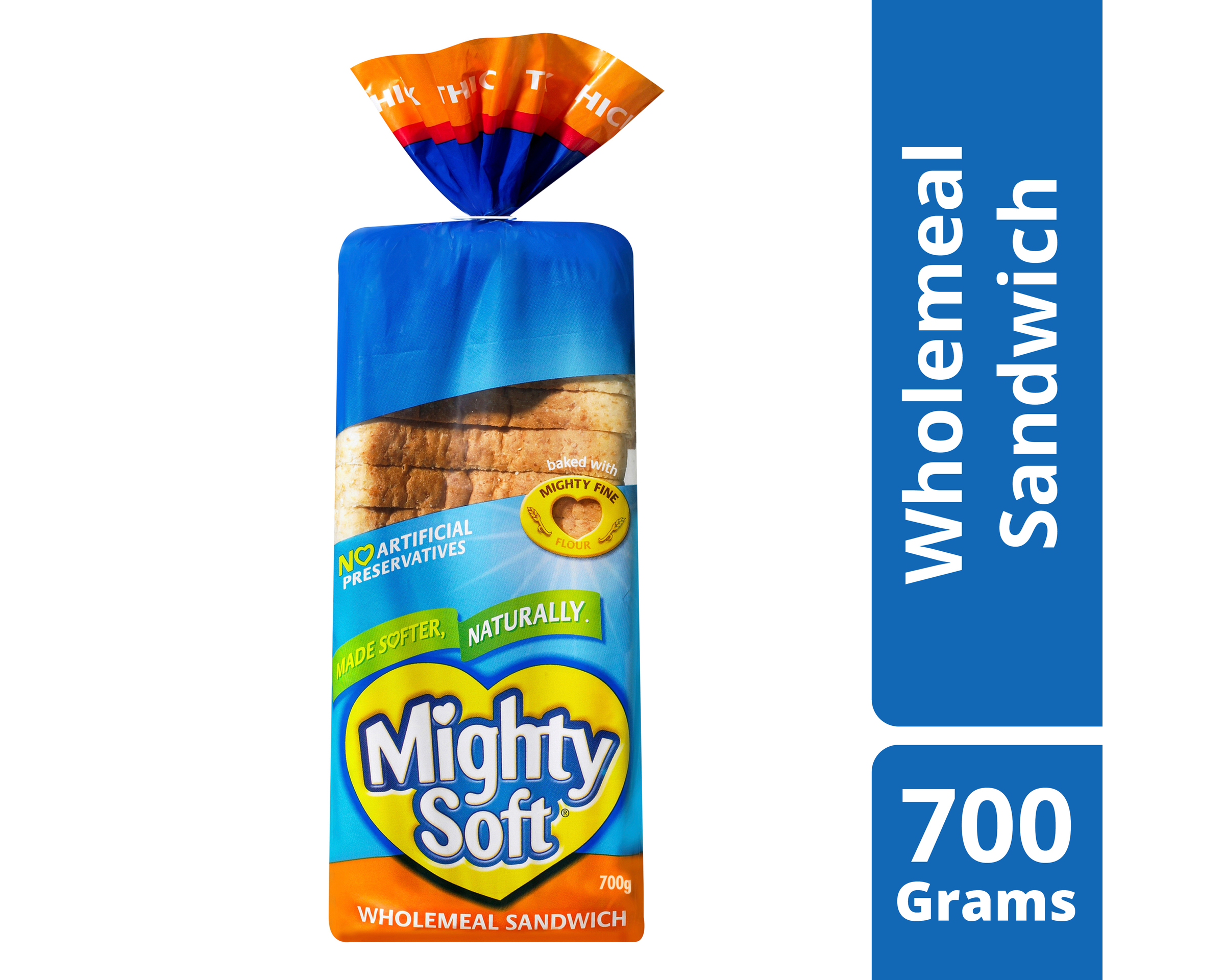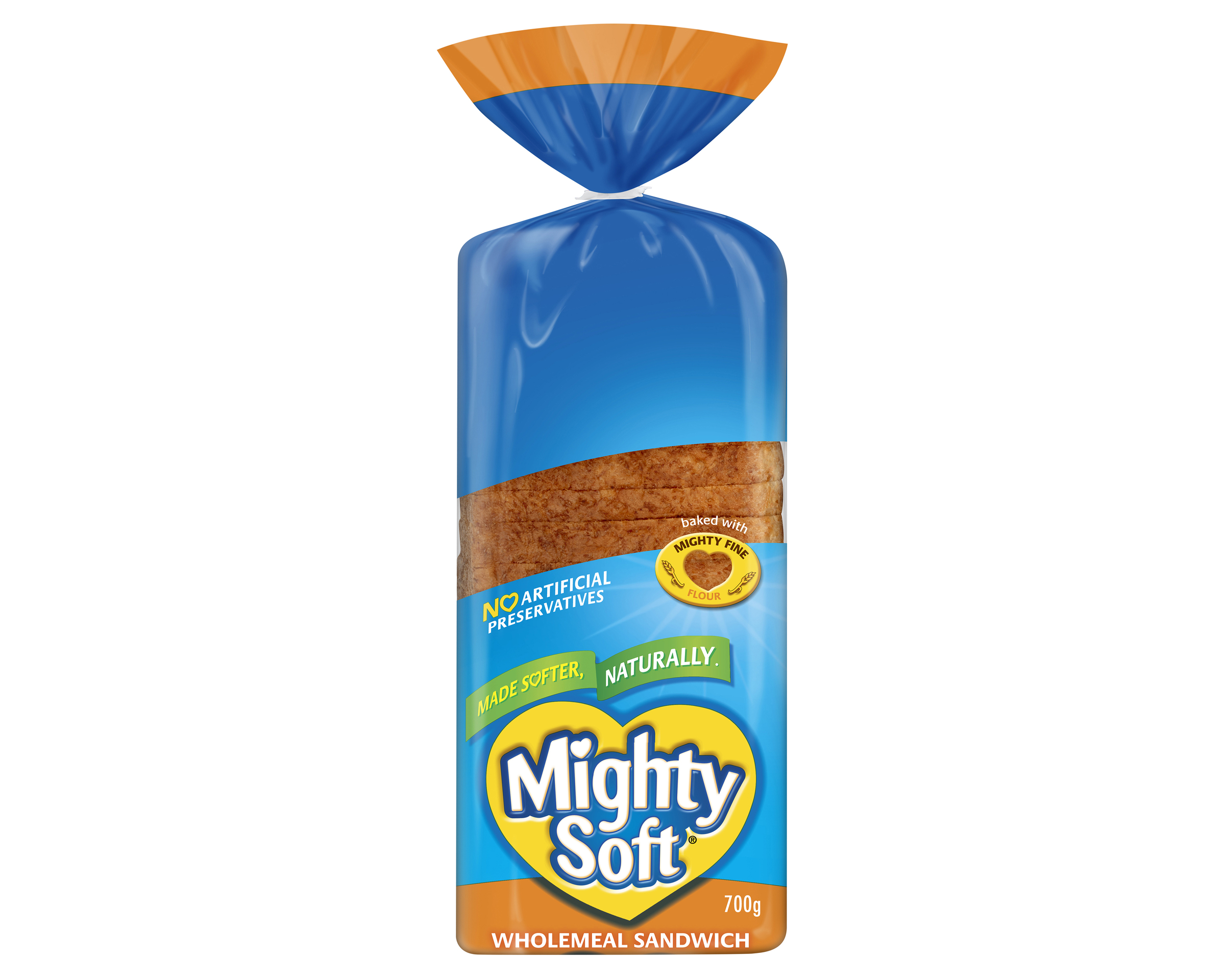 Made softer, naturally. Start your day with Mighty Soft Wholemeal Sandwich. This bread is made is made softer, naturally, with no artificial preservatives. For a naturally soft loaf, look no further than Mighty Soft Sliced Wholemeal.