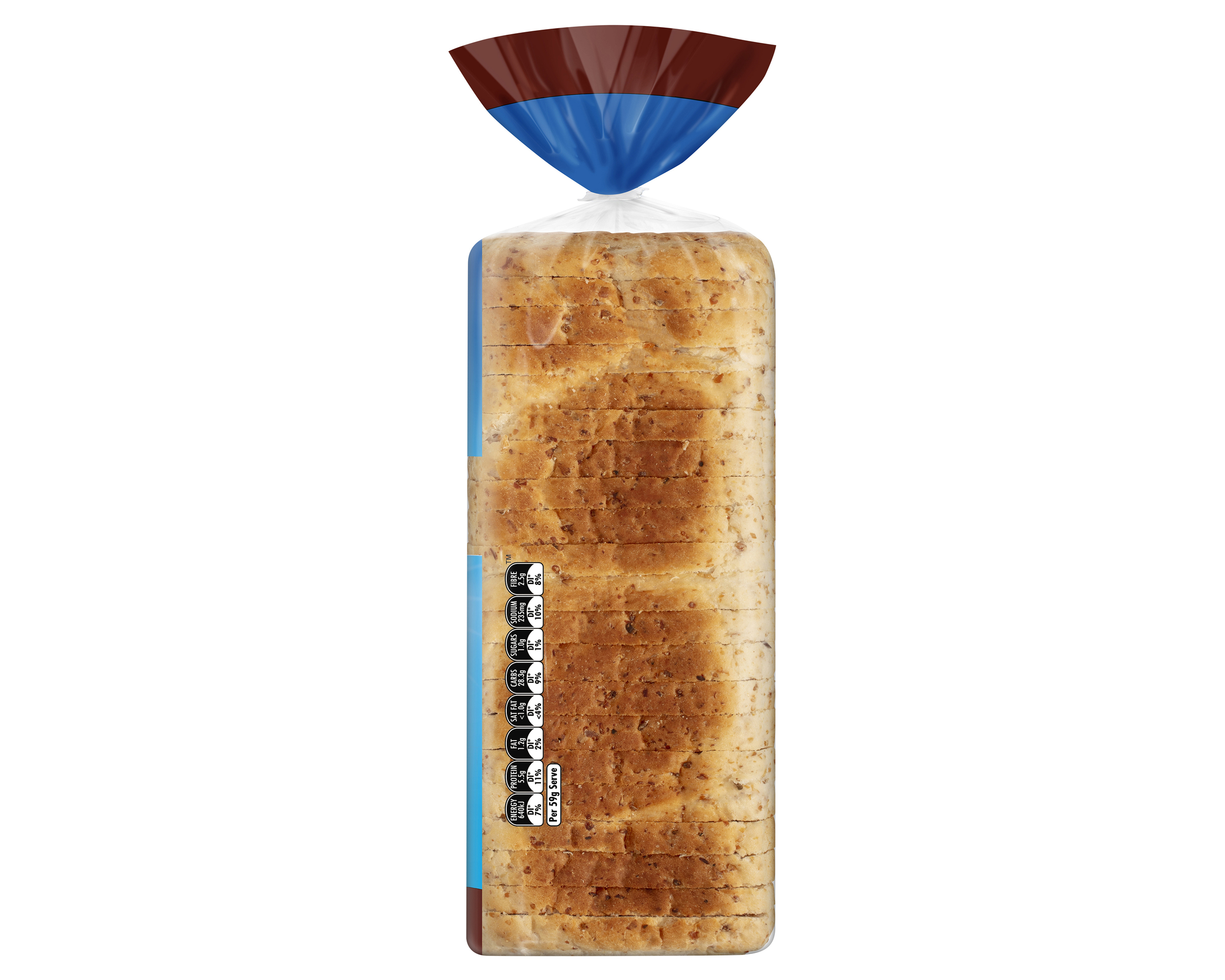 Unbleached wheat flour, water, mixed grains (16% minimum) (kibbled rye, kibbled triticale, kibbled wheat), yeast, wheat gluten, vinegar, iodised salt, canola oil, soy flour, vegetable emulsifiers (471, 481), mineral salt (calcium carbonate), vitamins (thiamin, folic acid)