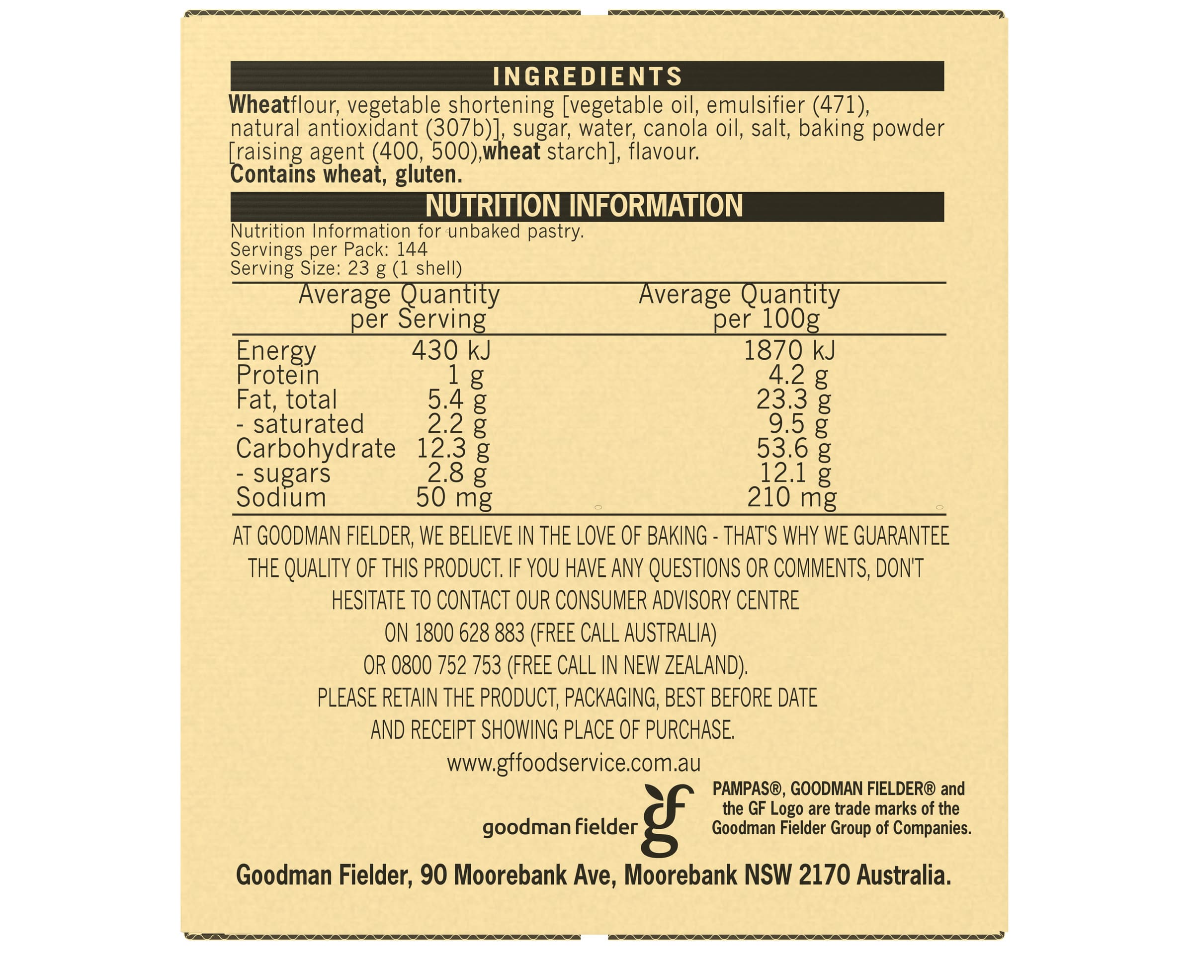 Wheatflour, Vegetable Shortening [Vegetable Oil, Emulsifier (471), Natural Antioxidant (307b)], Sugar, Water, Canola Oil, Salt, Baking Powder [Raising Agent (400, 500), Wheat Starch], Flavour