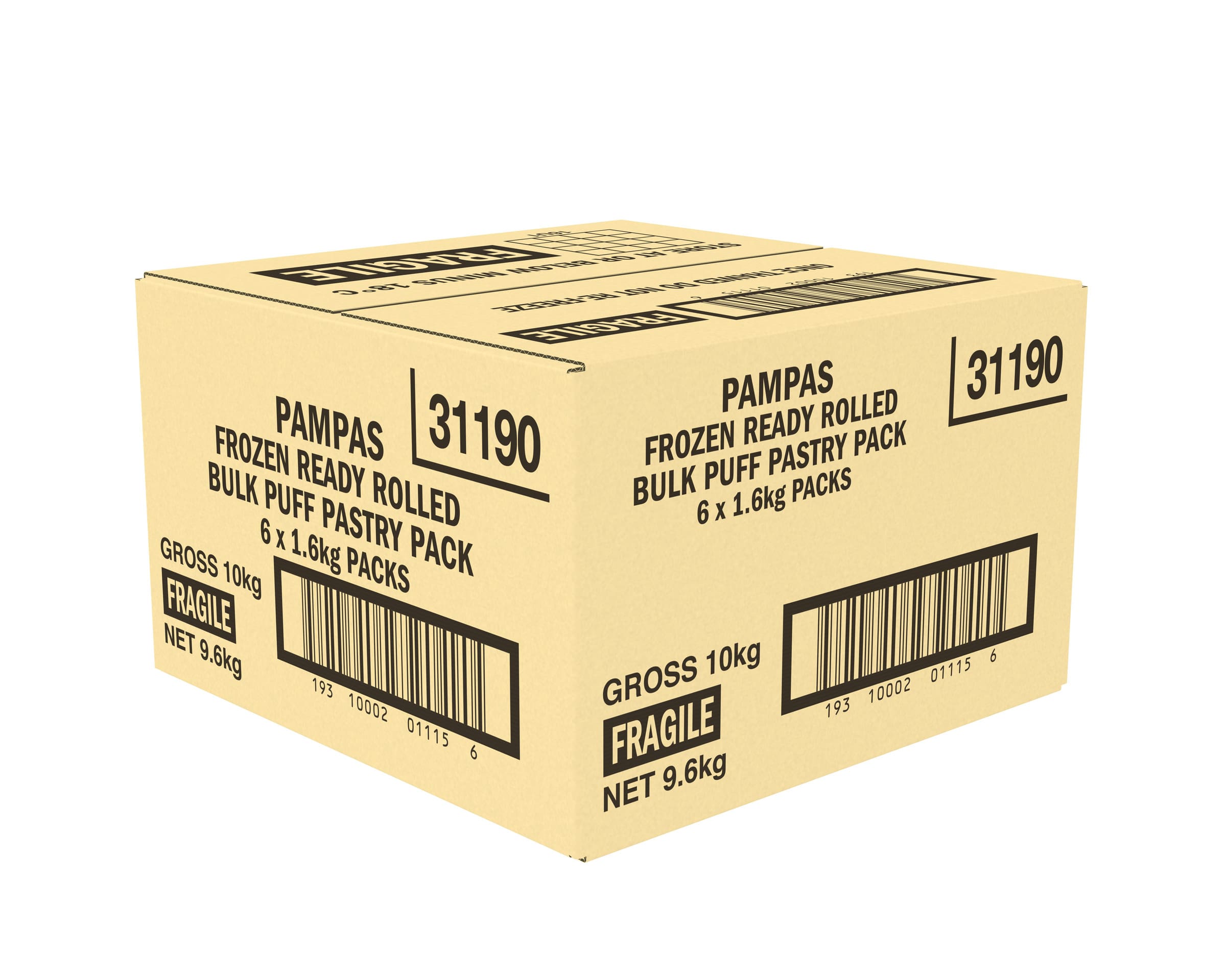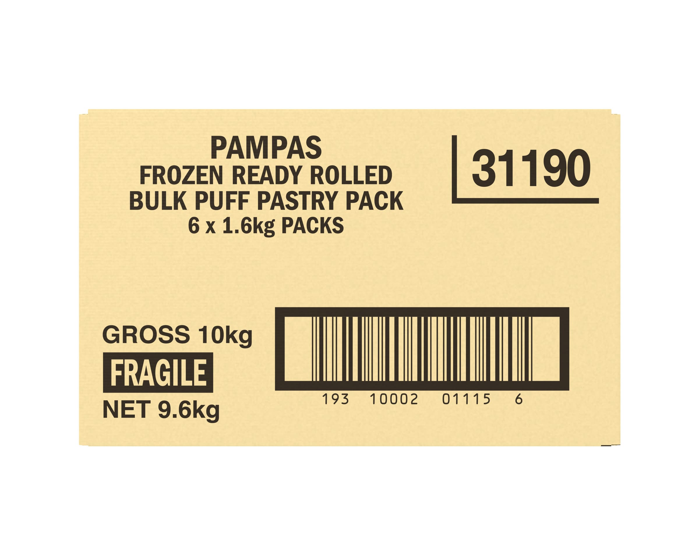 10 frozen ready rolled puff pastry sheets. Cream coloured pastry sheets, without streaks or cracks.