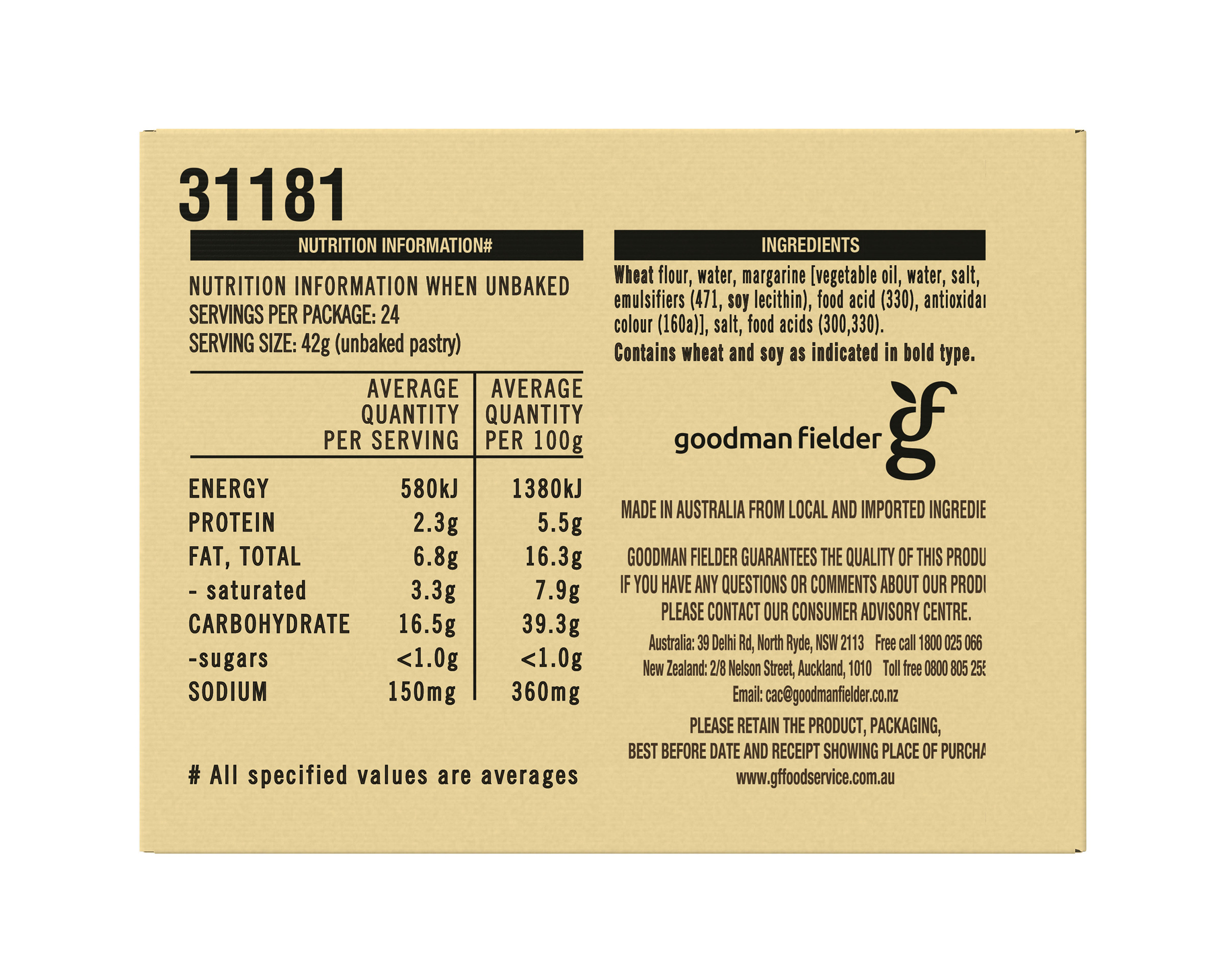 Wheat Flour, Water, Margarine [Vegetable Oil, Water, Salt, Emulsifiers (471, Soy Lecithin), Food Acid (330), Antioxidant, Colour (160a)], Salt, Food Acids (300, 330)
