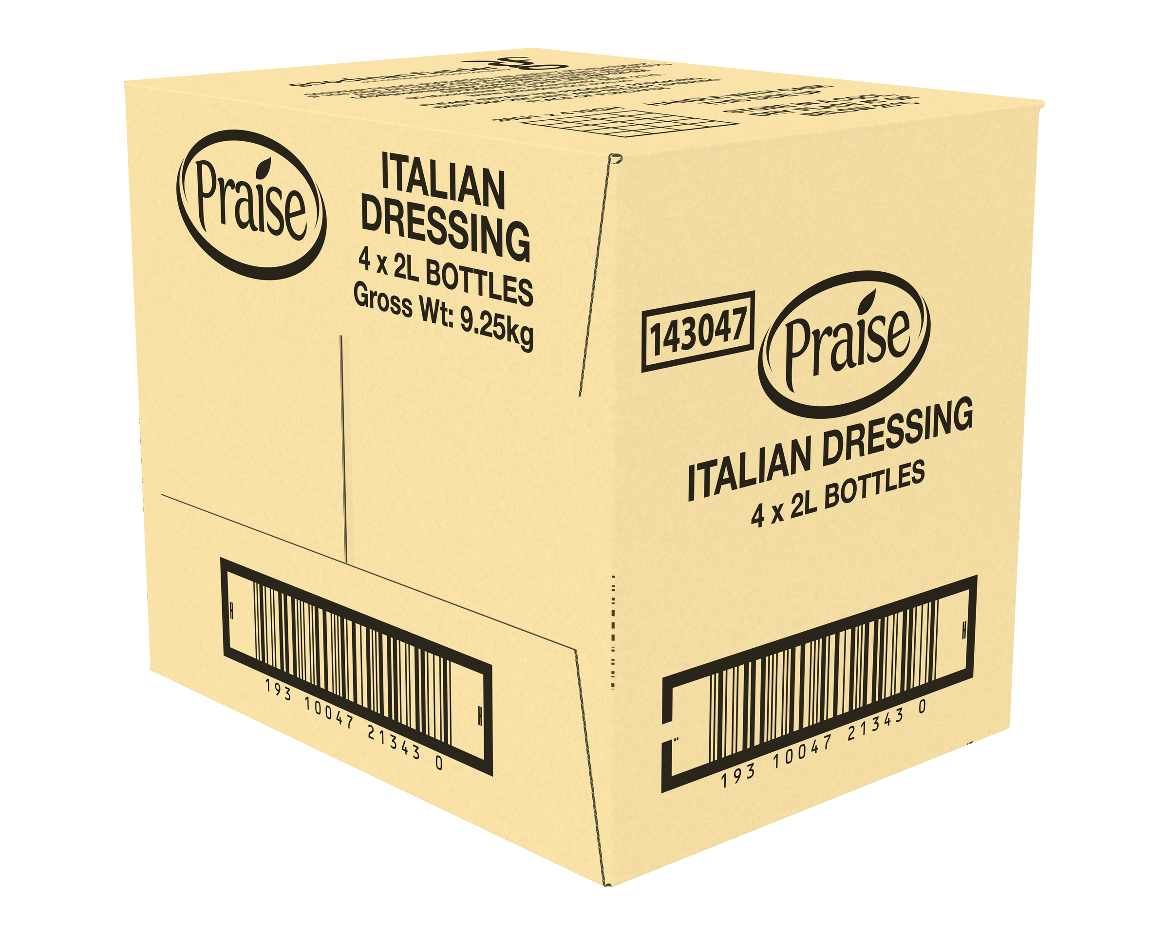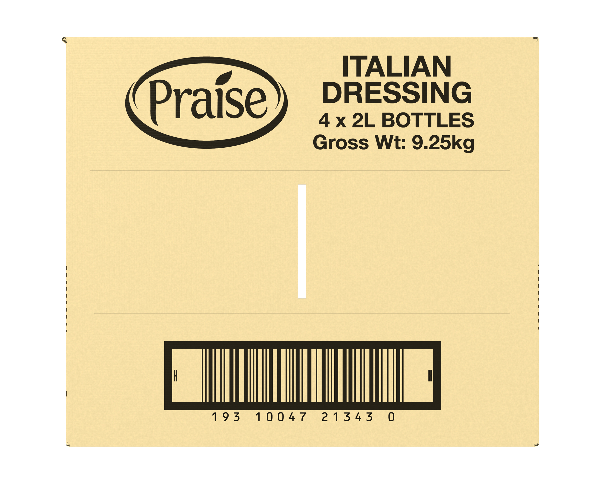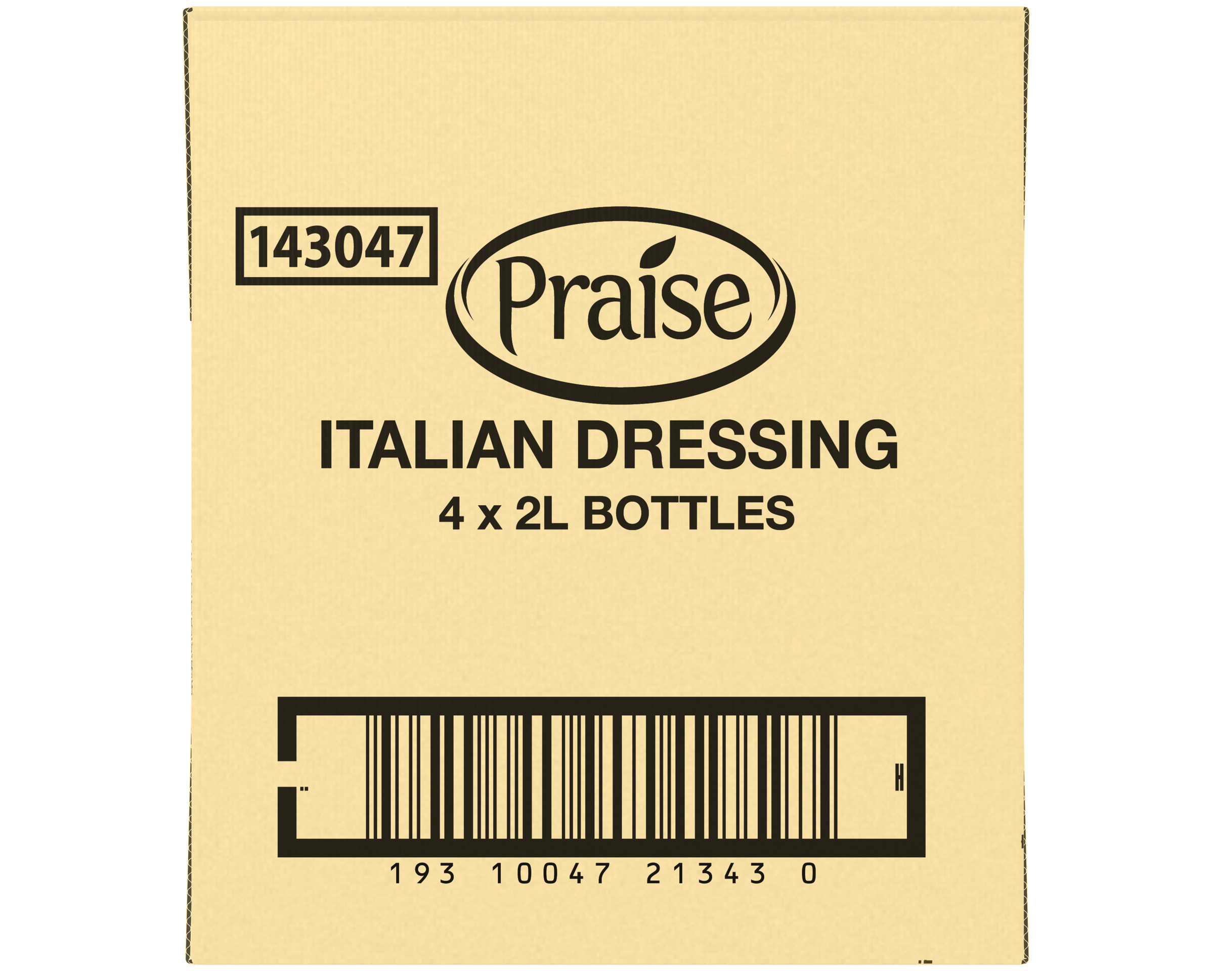 Dressing with oil floating on the surface of the orange/red aqueous phase. Visible herbs are evenly distributed thoroughly out the aqueous phase. It has herby garlic, sweet vinegary flavor. .