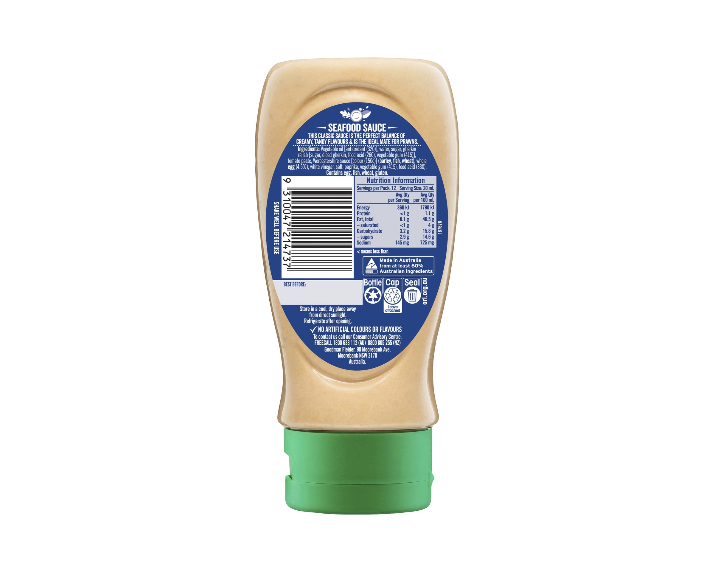 Finally, a dip crafted especially for your seafood favourites! Whether you’re having crunchy, juicy tempura, fresh oysters and prawns, or a fancy lobster mornay, this sauce is sure to make every bite extra creamy and delicious. Made with real Australian fresh eggs and contains no artificial colours or flavours. .