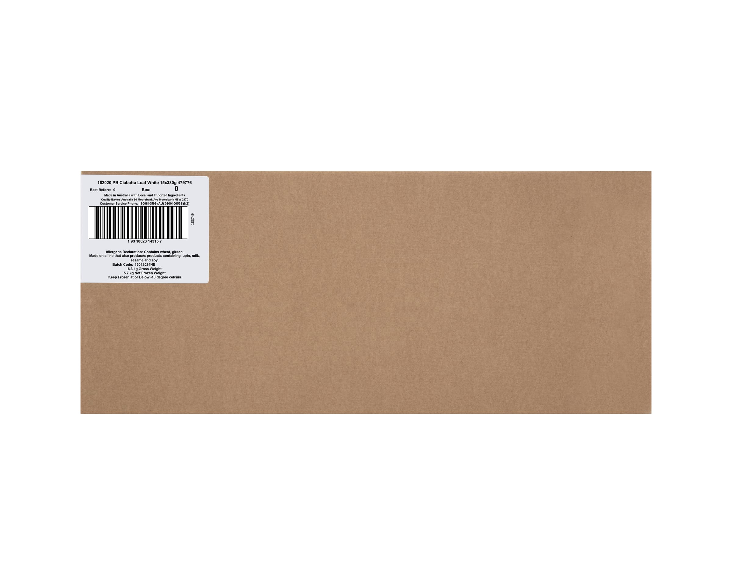 White Ciabatta Loaf is an Italian artisan style stamped product, rectangular in shape with a minimum to moderately open internal crumb structure. The product has been par baked on a stone floor oven to give a crusty finish. The product has a light dusting of flour. .