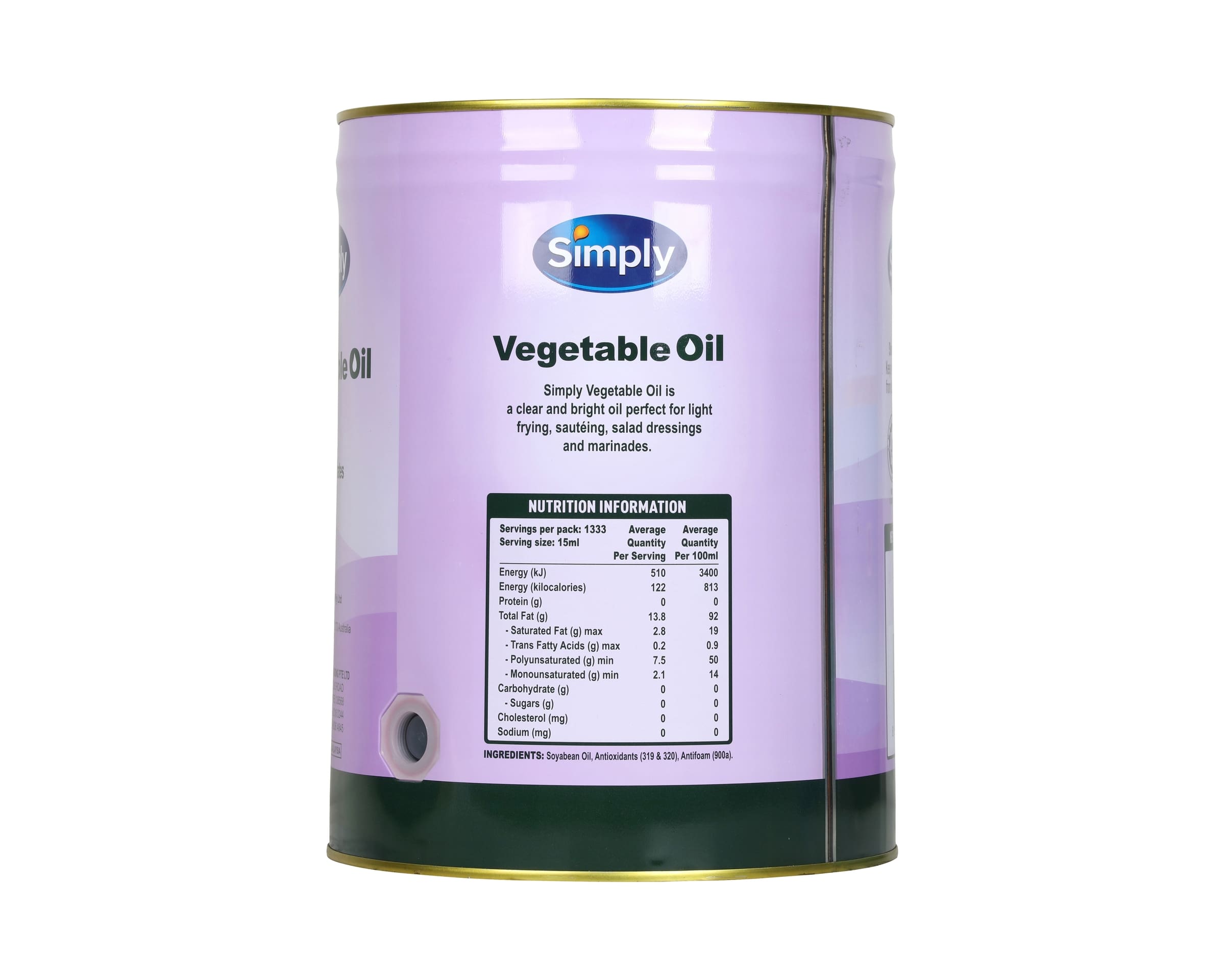Simply Vegetable Oil is premium 100% soya bean oil which is high in polyunsaturates. .
