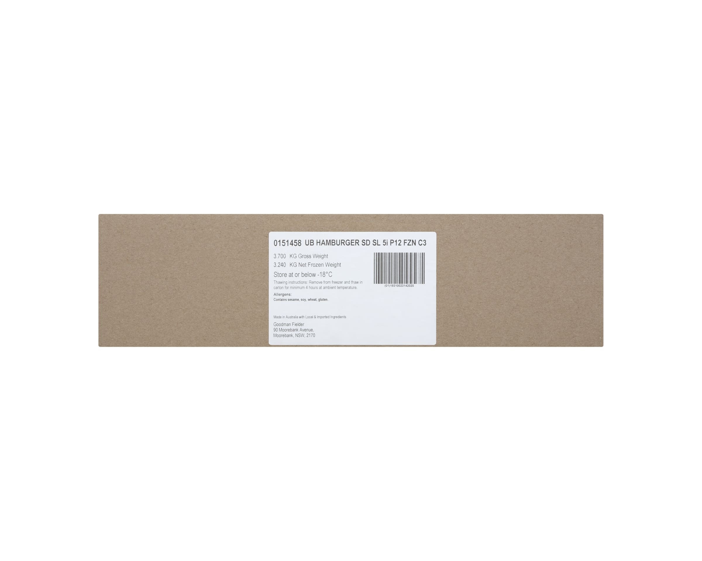 Frozen sliced white bread roll topped with sesame seeds. Unbranded Hamburger 5″ Rolls Seeded are white soft round bread roll, with a creamy white internal crumb with a golden brown exterior. Rolls are topped with a sprinkle of sesame seeds.