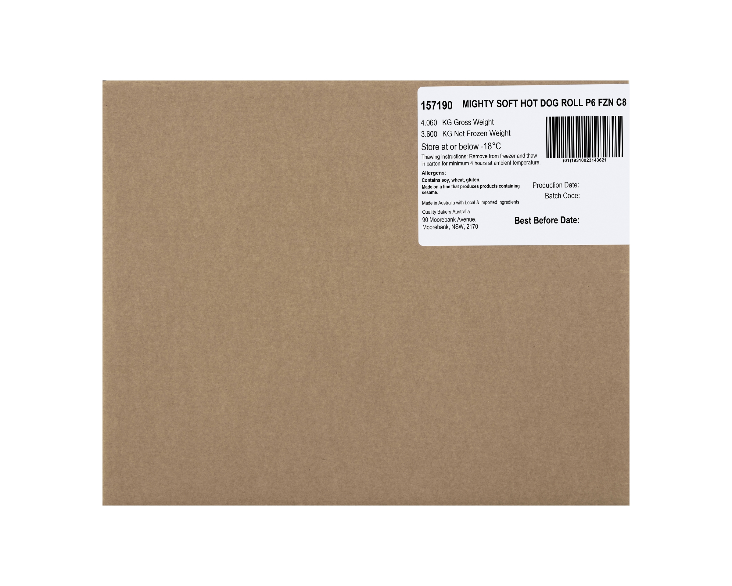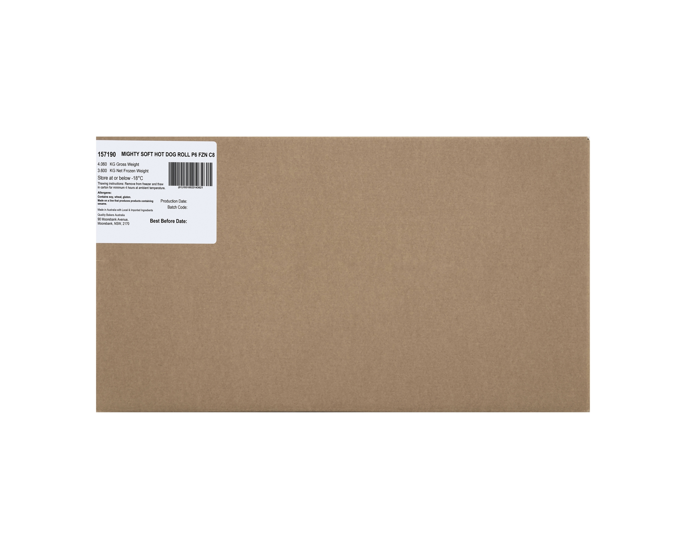 Country of Origin: Made in from at least 0 Australian ingredients