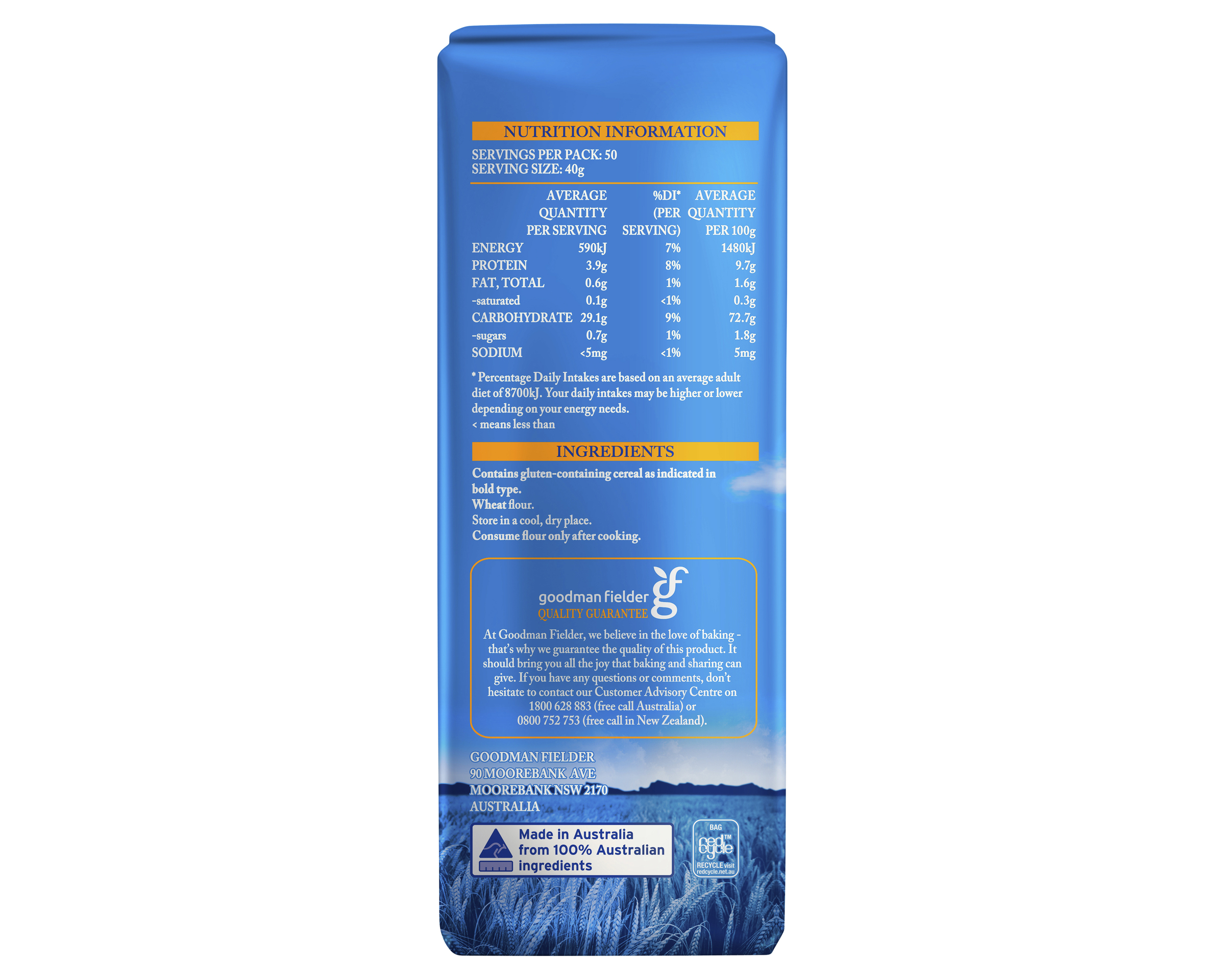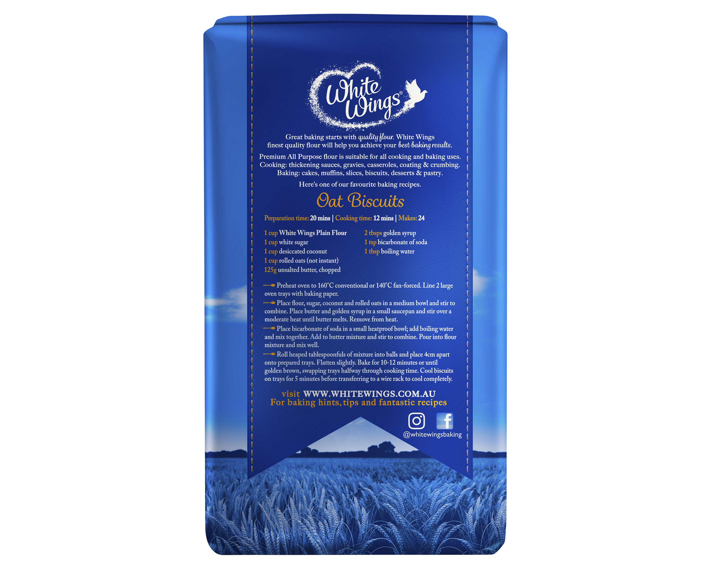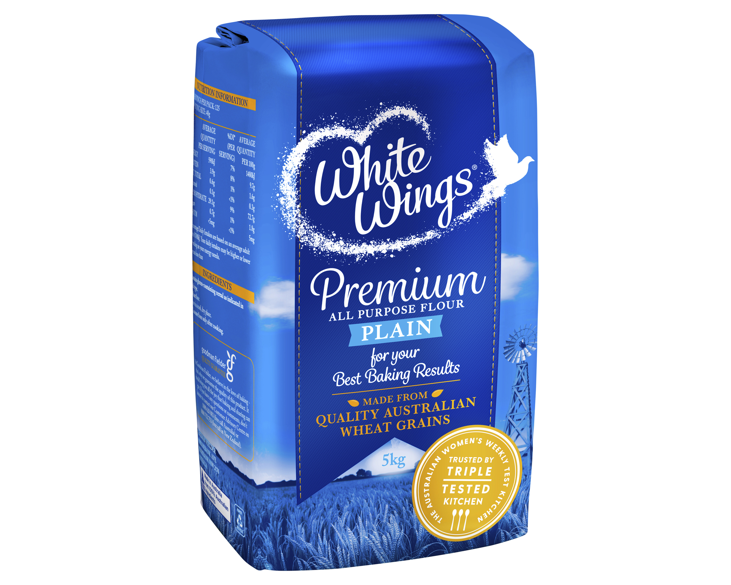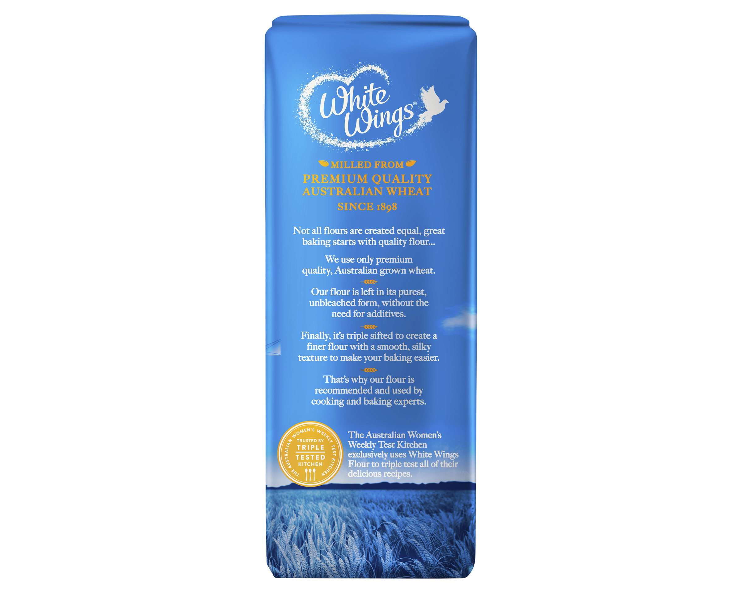 White Wings Premium All Purpose Plain Flour is made from quality Australian wheat grains to make sure you get the best cooking and baking results. it’s a versatile kitchen staple. Great baking starts with quality flour. White Wings Premium All Purpose Plain Flour is crafted from premium quality Australian grown wheat, leaving it in it’s purest form without the need for additives.