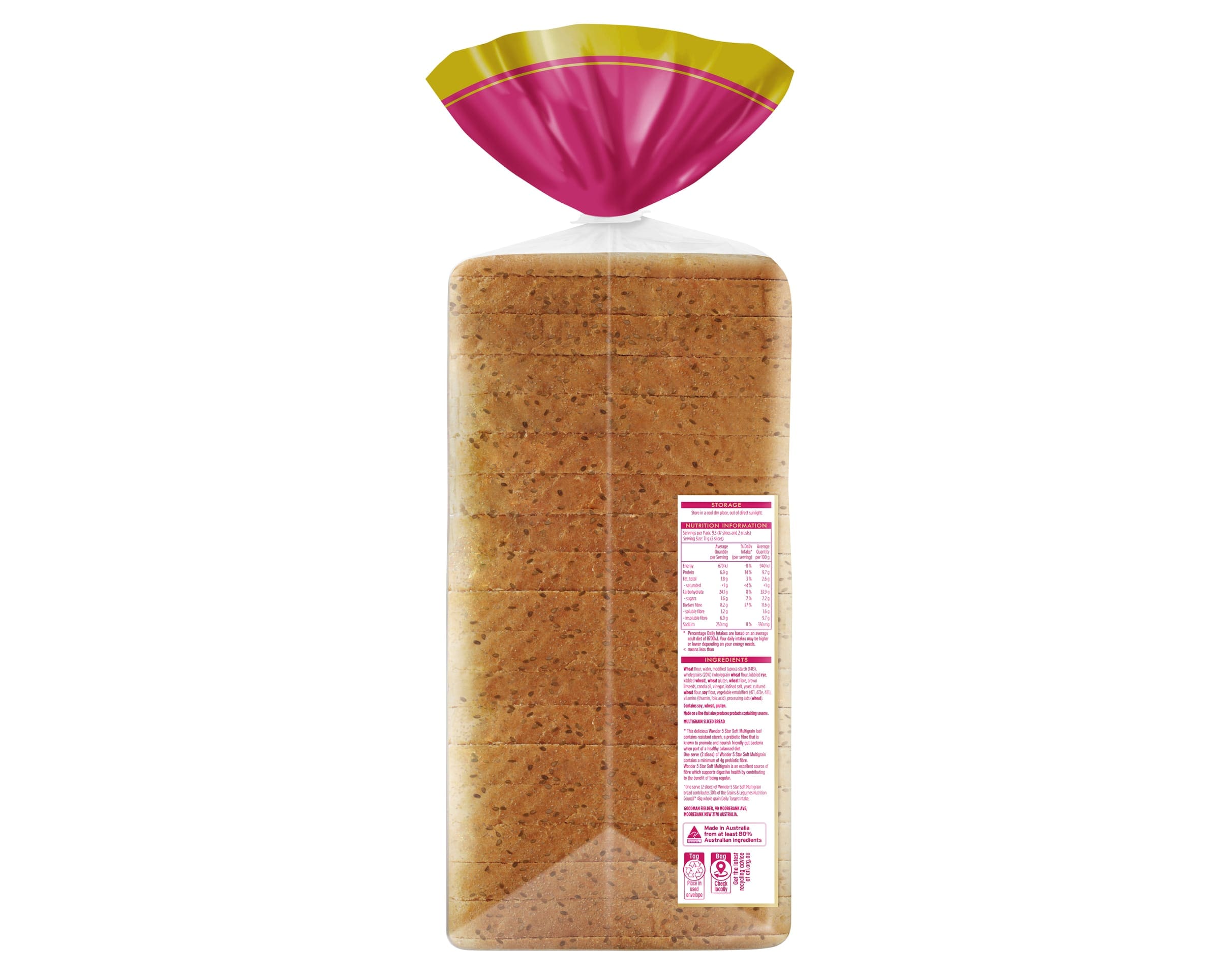 Wheat Flour, Water, Modified Tapioca Starch (1413), Wholegrains (20%) (Wholegrain Wheat Flour, Kibbled Rye, Kibbled Wheat), Wheat Gluten, Wheat Fibre, Brown Linseeds, Canola Oil, Vinegar, Iodised Salt, Yeast, Cultured Wheat Flour, Soy Flour, Vegetable Emulsifiers (471, 472e, 481), Vitamins (Thiamin, Folic Acid), Processing Aids (Wheat)