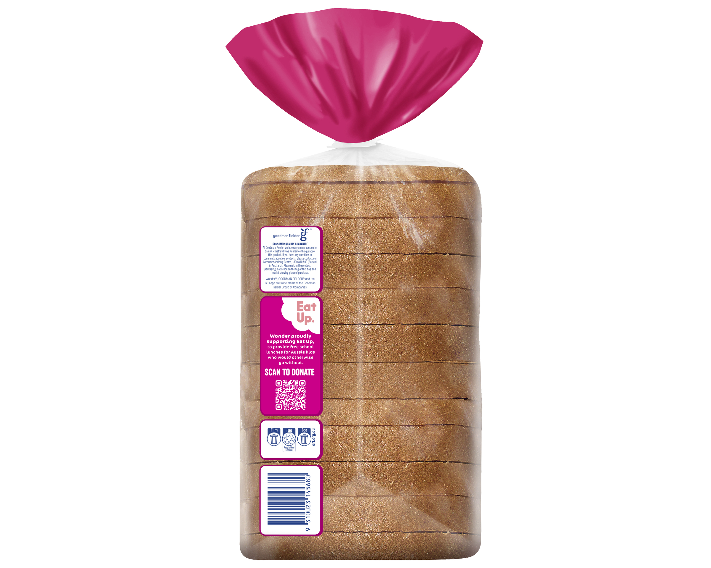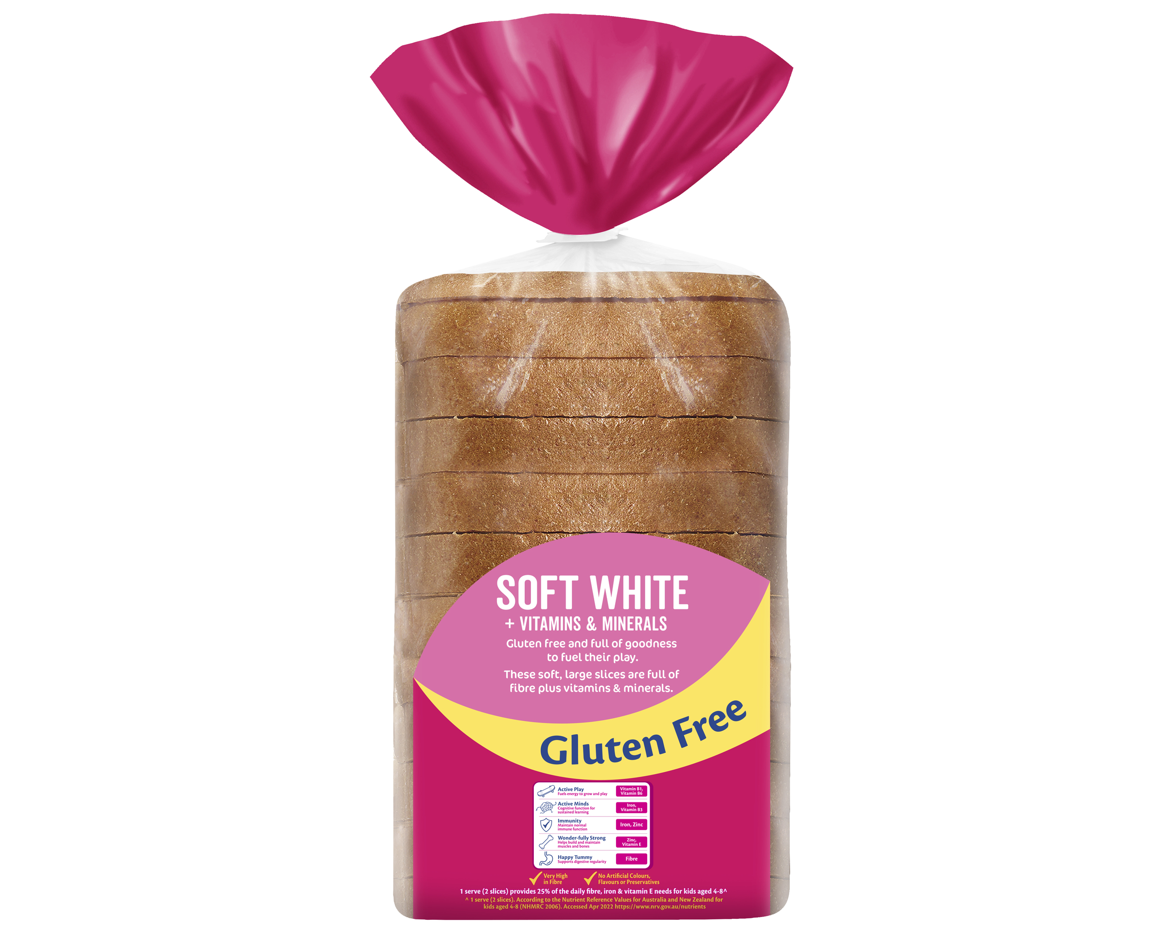 1 serve (2 slices) provides 25% of the daily fibre, iron & vitamin E needs for kids aged 4-8^