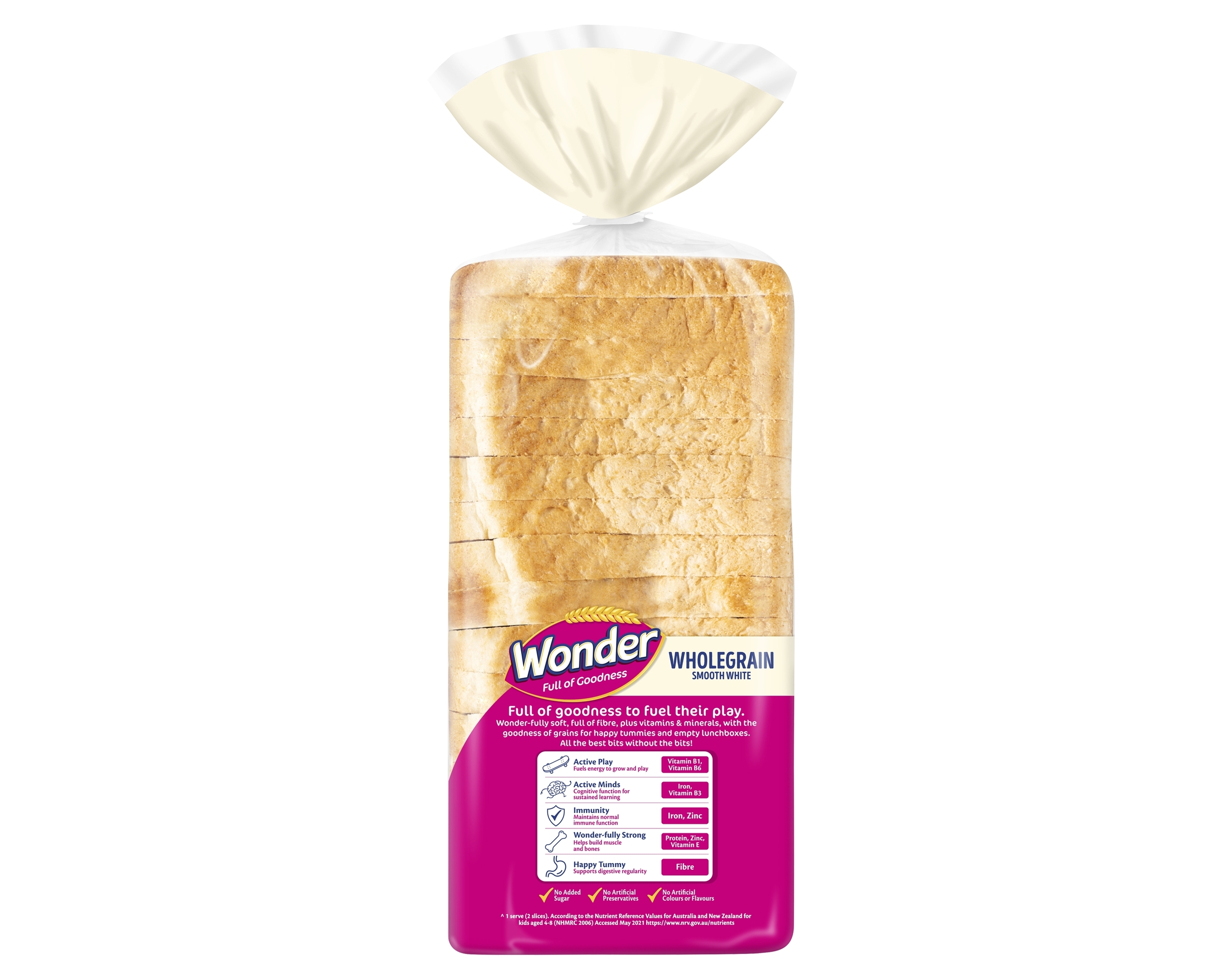 ^ 1 serve (2 slices). According to the Nutrient Reference Values for Australia and New Zealand for kids aged 4-8 (NHMRC 2006) Accessed May 2021 https://www. nrv. gov.