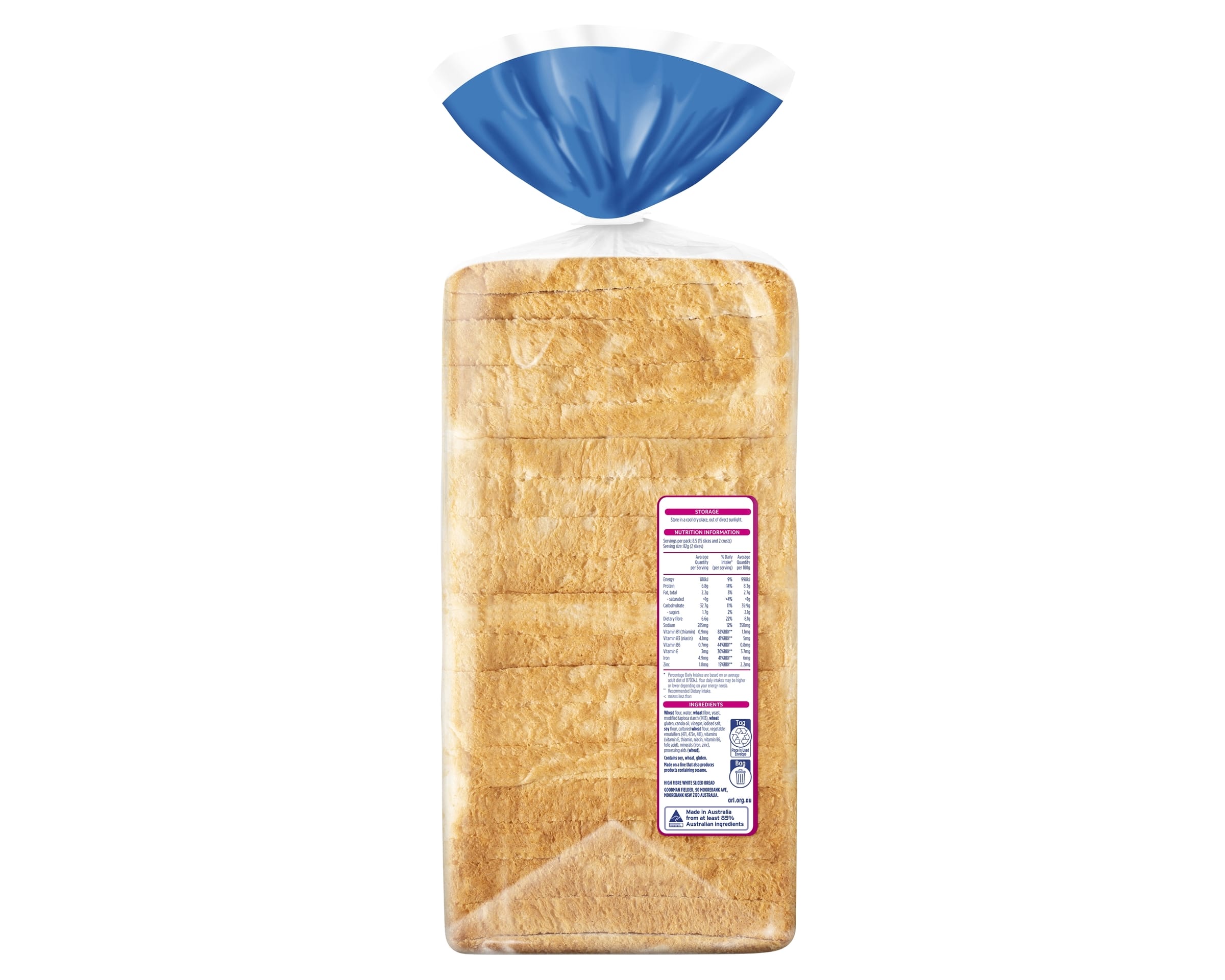 Wheat Flour, Water, Wheat Fibre, Yeast, Modified Tapioca Starch (1413), Wheat Gluten, Canola Oil, Vinegar, Iodised Salt, Soy Flour, Cultured Wheat Flour, Vegetable Emulsifiers (471, 472e, 481), Vitamins (Vitamin E, Thiamin, Niacin, Vitamin B6, Folic Acid), Minerals (Iron, Zinc), Processing Aids (Wheat)