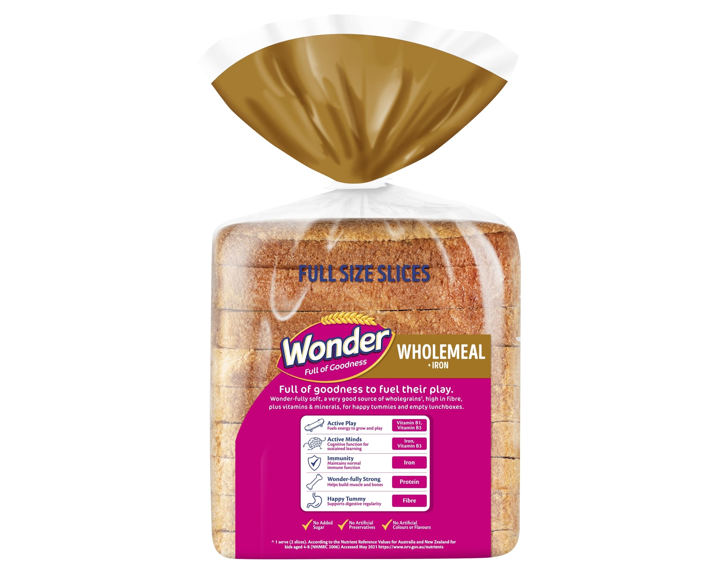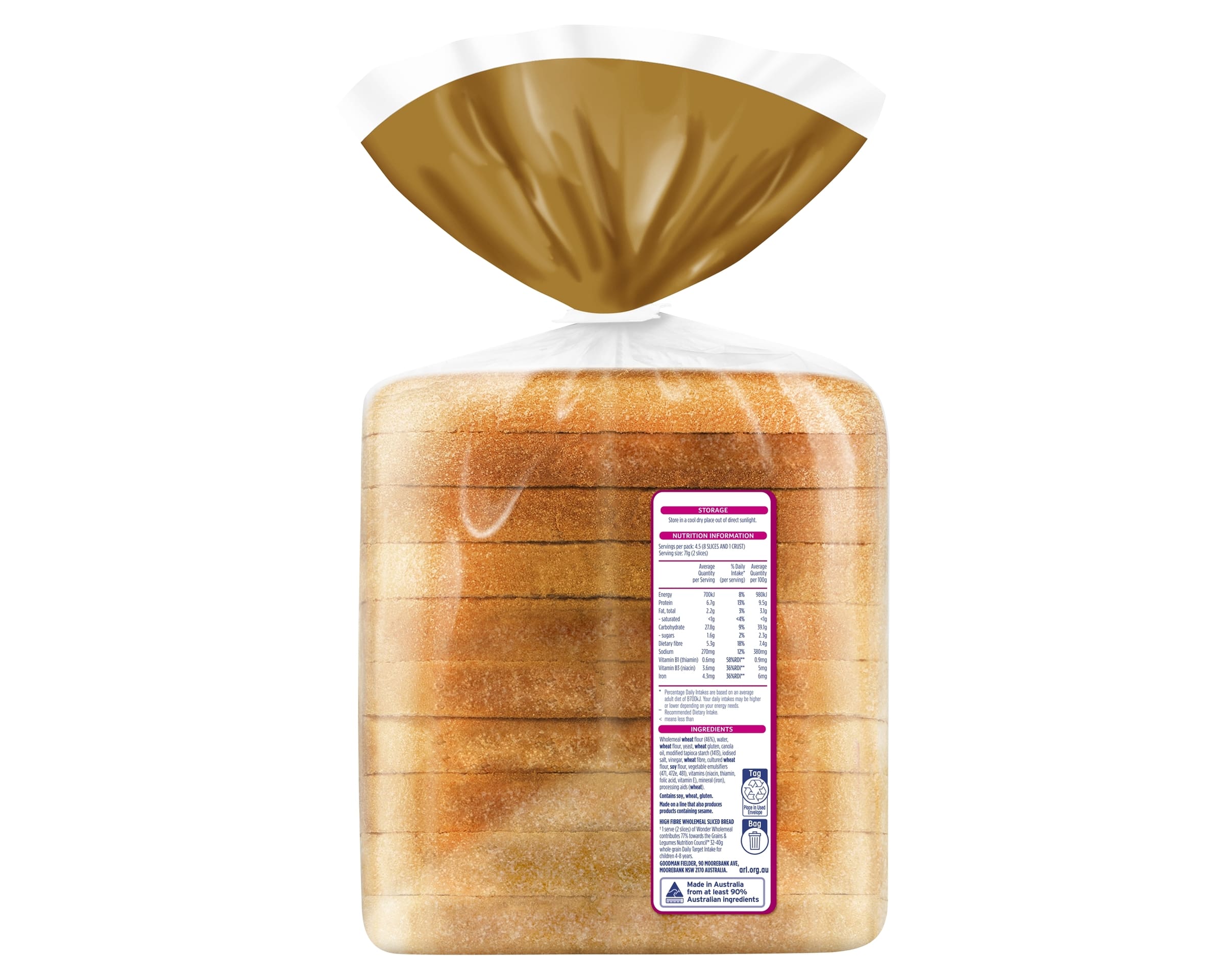 Wholemeal Wheat Flour (46%), Water, Wheat Flour, Yeast, Wheat Gluten, Canola Oil, Modified Tapioca Starch (1413), Iodised Salt, Vinegar, Wheat Fibre, Cultured Wheat Flour, Soy Flour, Vegetable Emulsifiers (471, 472e, 481), Vitamins (Niacin, Thiamin, Folic Acid, Vitamin E), Mineral (Iron), Processing Aids (Wheat)