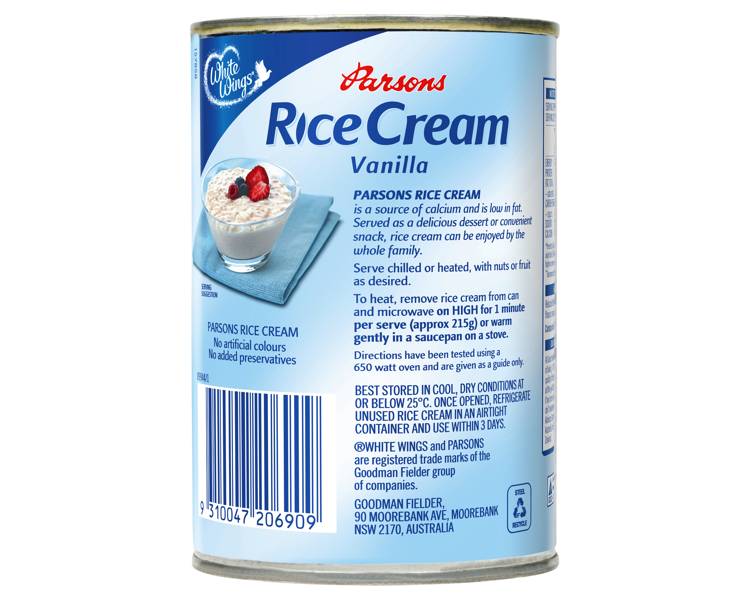 Parsons Rice Cream is a source of calcium and is low in fat. Served as a delicious dessert or convenient snack, rice cream can be enjoyed by the whole family. .