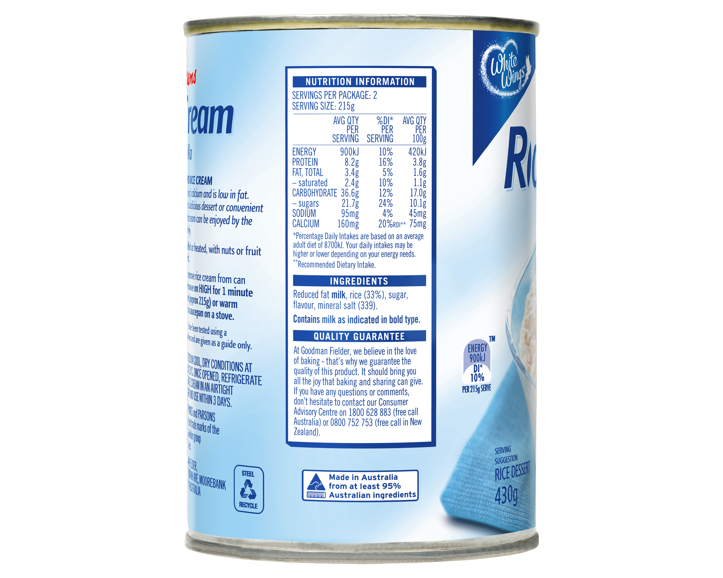 Reduced Fat Milk, Rice (33%), Sugar, Flavour, Mineral Salt (339)