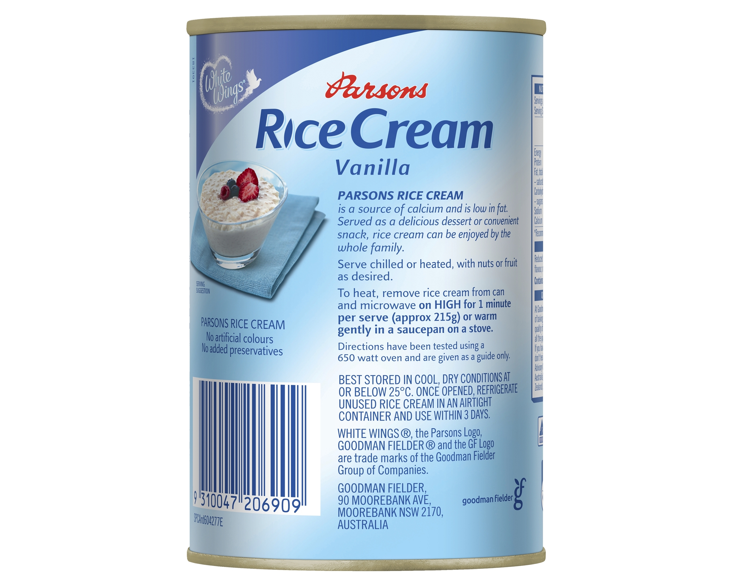 Parsons Rice Cream is a source of calcium and is low in fat. Served as a delicious dessert or convenient snack, rice cream can be enjoyed by the whole family. .