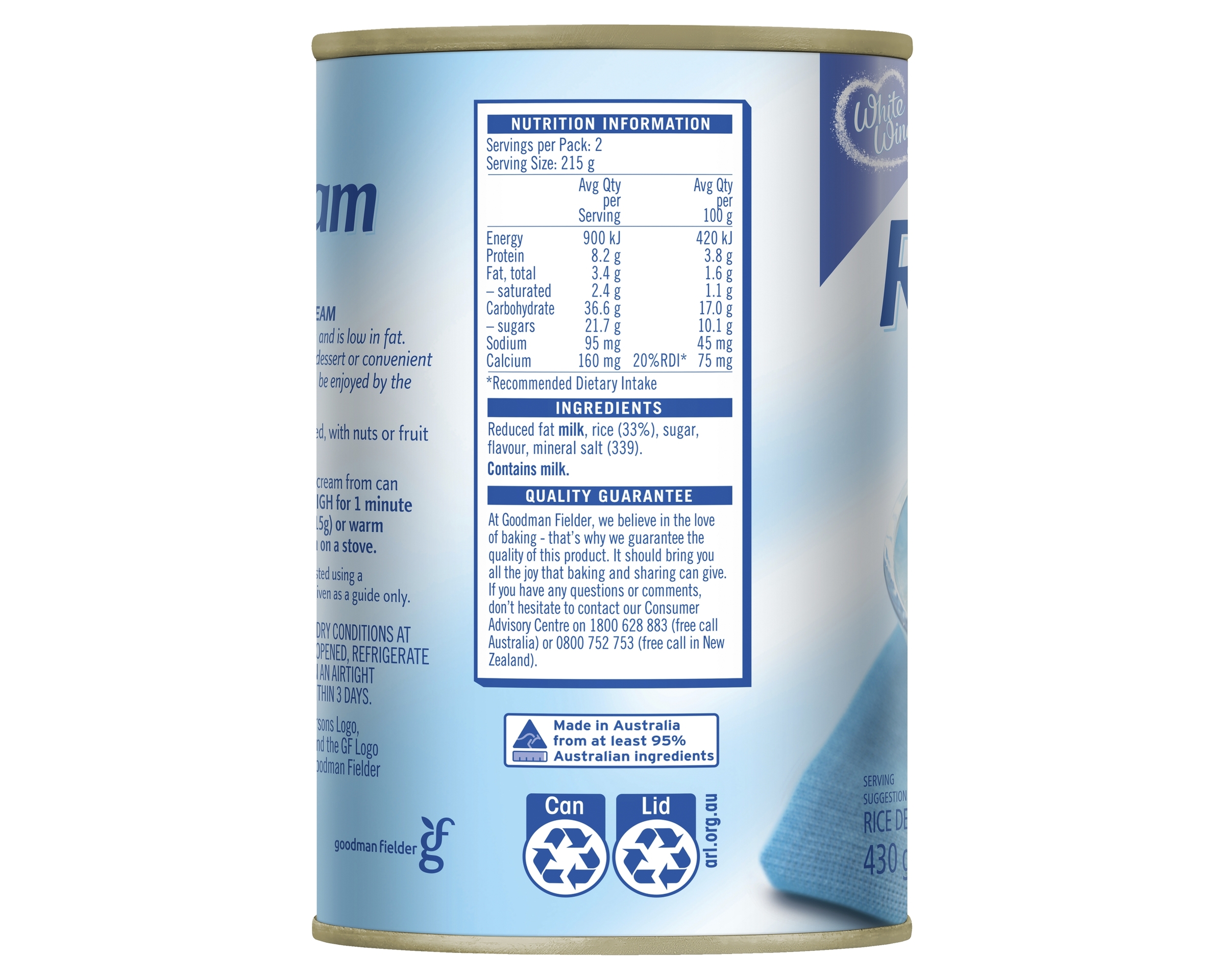 Reduced Fat Milk, Rice (33%), Sugar, Flavour, Mineral Salt (339)